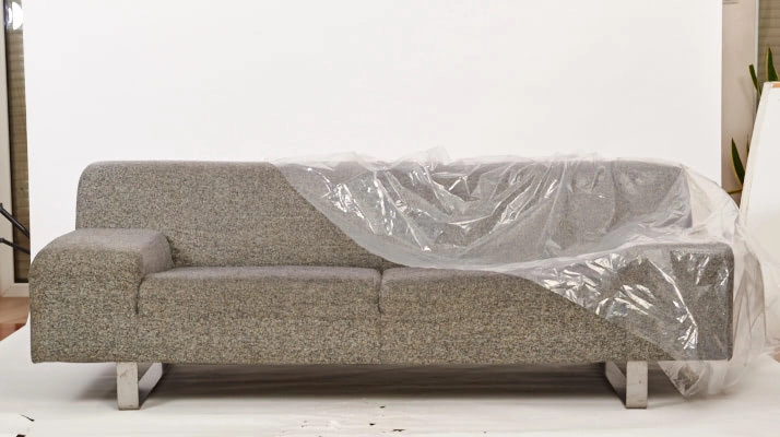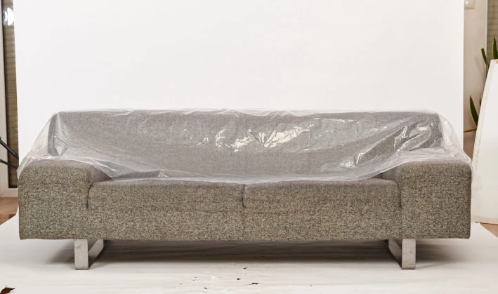 Housse en polyéthylène résistante pour fauteuil, dimensions 243,8 × 137,2 cm, conçue sur mesure pour une protection rapide et propre du mobilier. Elle est imperméable, résistante aux déchirures et offre un aspect soigné grâce à sa transparence, laissant le meuble visible tout en le protégeant des salissures.