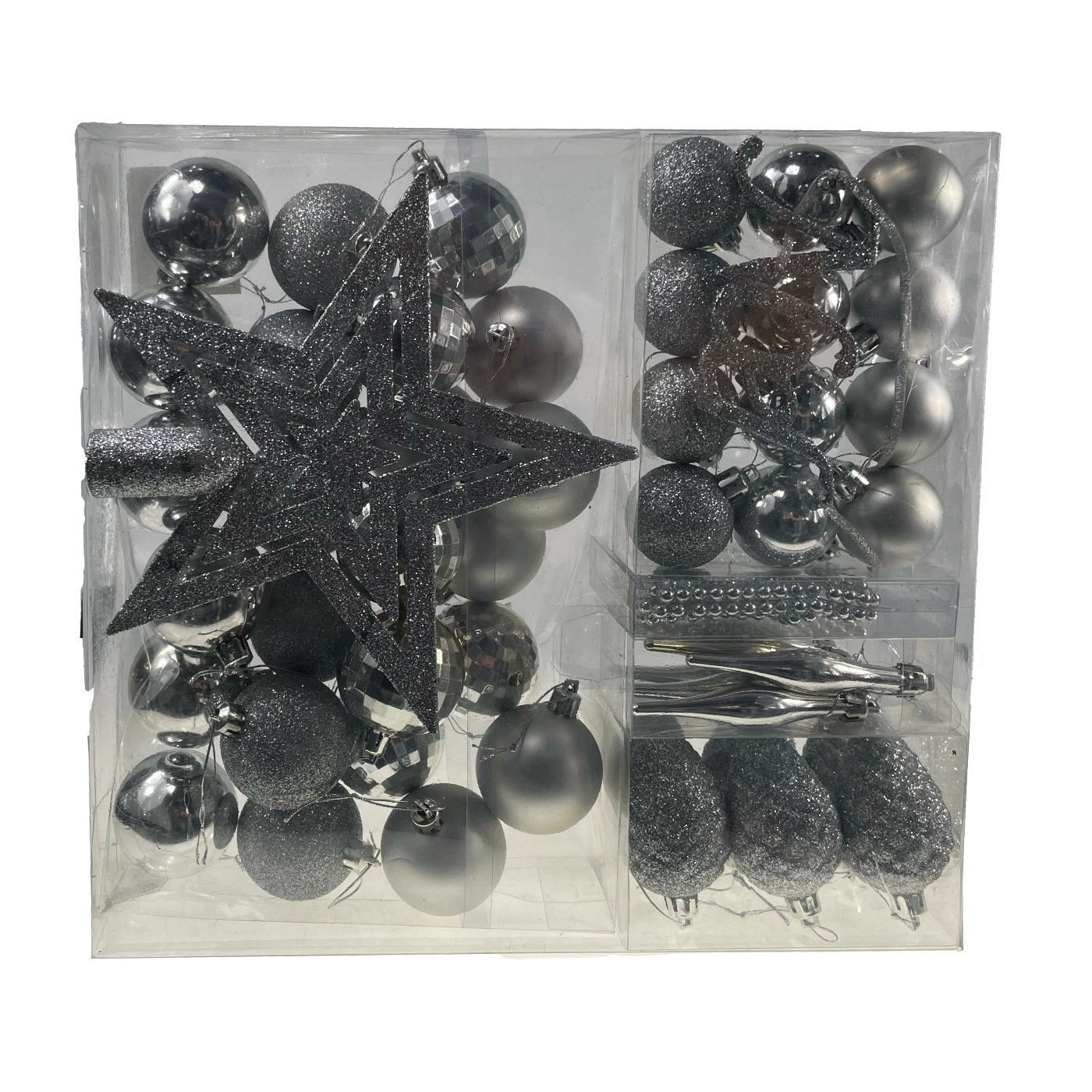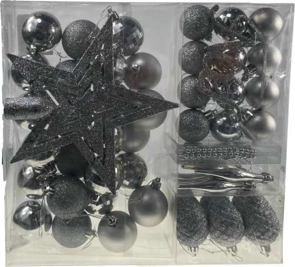 Offrez à votre sapin une décoration parfaitement coordonnée. Ce set complet dans une teinte argentée intemporelle allie éclat et élégance, adaptés aux intérieurs modernes comme traditionnels. Grâce au plastique léger et résistant, les décorations sont sûres, faciles à suspendre et moins sujettes aux dommages lors de la manipulation.