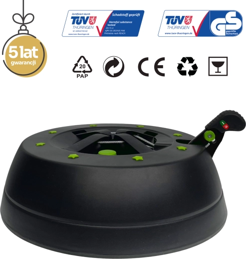 La base circulaire à profil bas, d’un poids de 4,2 kg, assure un maintien ferme et une grande stabilité, même lors de la décoration de l’arbre.