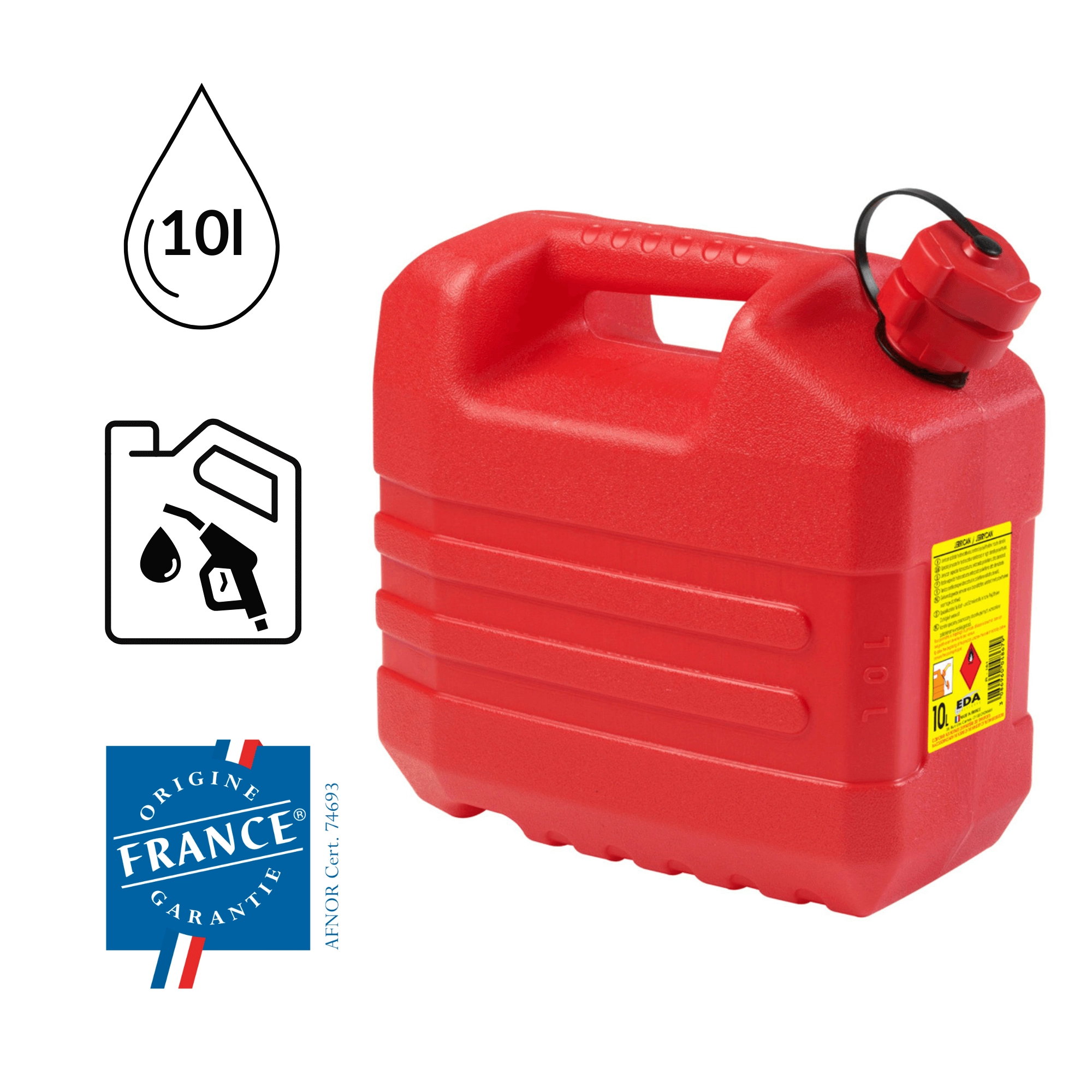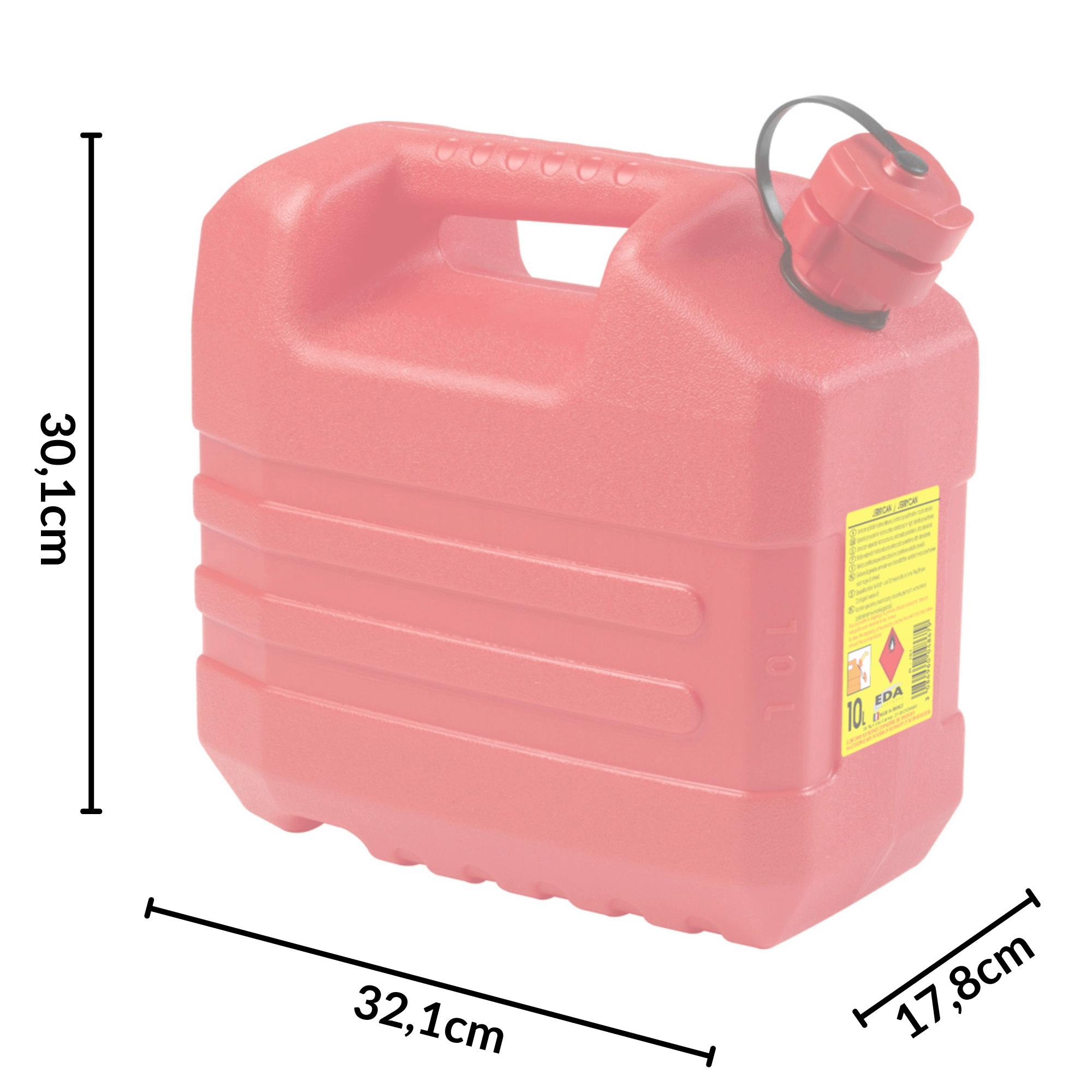 Bidon de carburant pratique de 10 L pour une utilisation quotidienne à l’atelier, au jardin et en déplacement. Fabriqué en plastique résistant pour un stockage sûr et étanche, avec un bec verseur télescopique pour un versement précis et propre et une poignée ergonomique pour un transport confortable. Dimensions compactes et couleur rouge haute visibilité pour plus de sécurité et de confort d’utilisation.