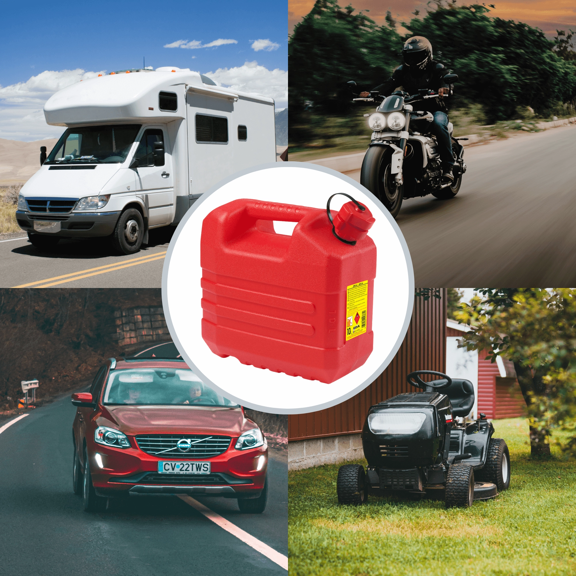 Grâce au large goulot et au bec flexible, vous ajoutez le carburant précisément là où il faut – des tondeuses aux groupes électrogènes jusqu’aux motos. La poignée ergonomique assure une prise en main sûre même à pleine charge et le format compact permet un rangement facile dans le coffre de la voiture ou le garage.