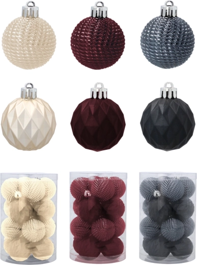 Chaque boule possède un œillet métallique et le coffret inclut une élégante ficelle argentée ou dorée pour une décoration rapide.