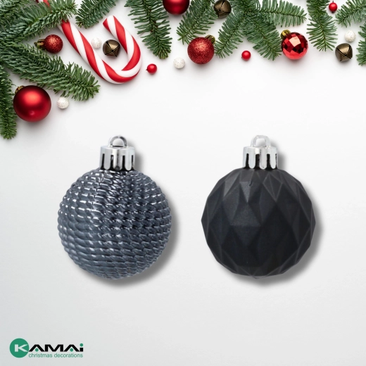 Ces boules compactes au ton anthracite profond apportent une touche sophistiquée au sapin comme aux autres décorations. Elles sont fabriquées en plastique incassable, idéales pour les foyers avec enfants et animaux. Le coffret comprend une ficelle élégante pour un accrochage facile.