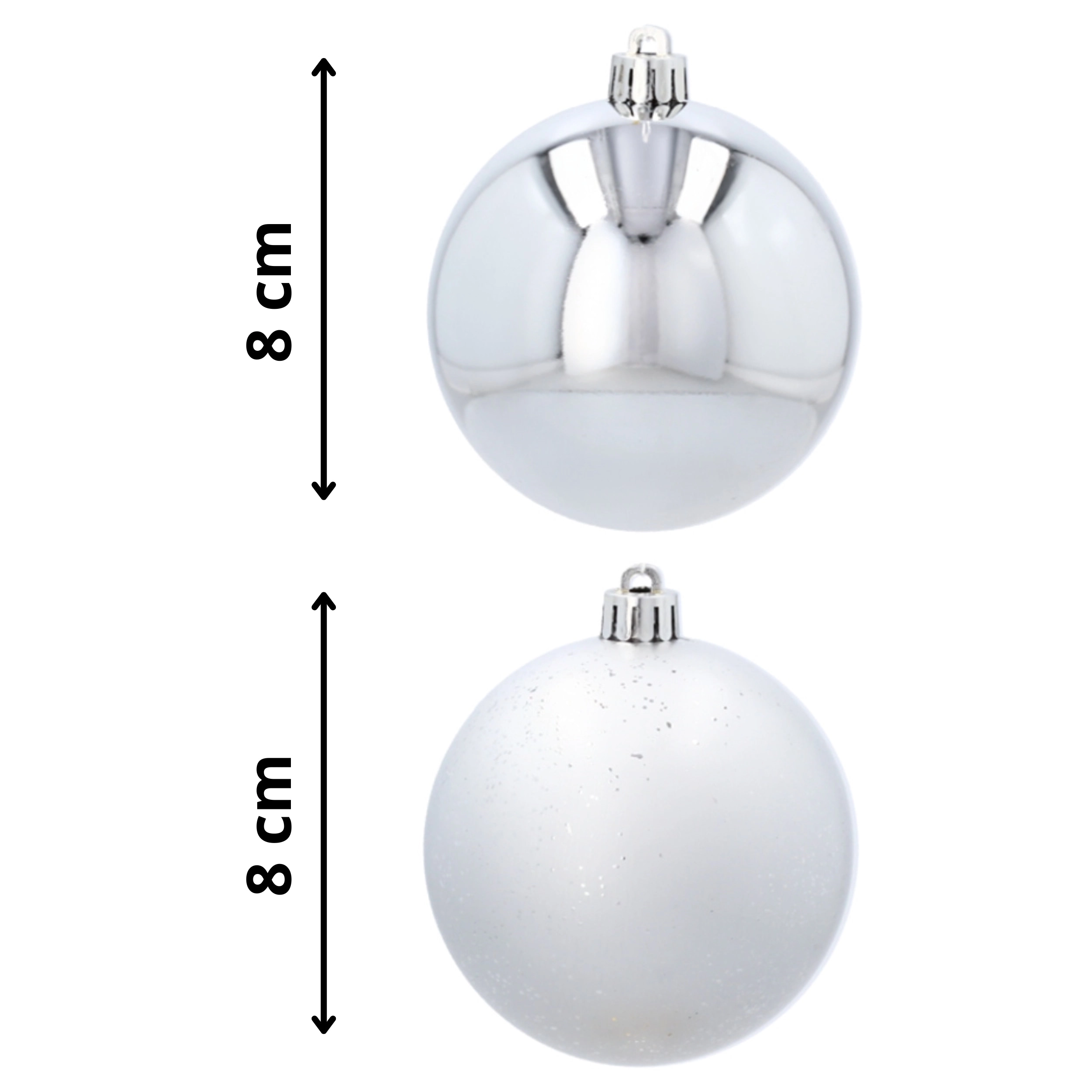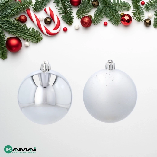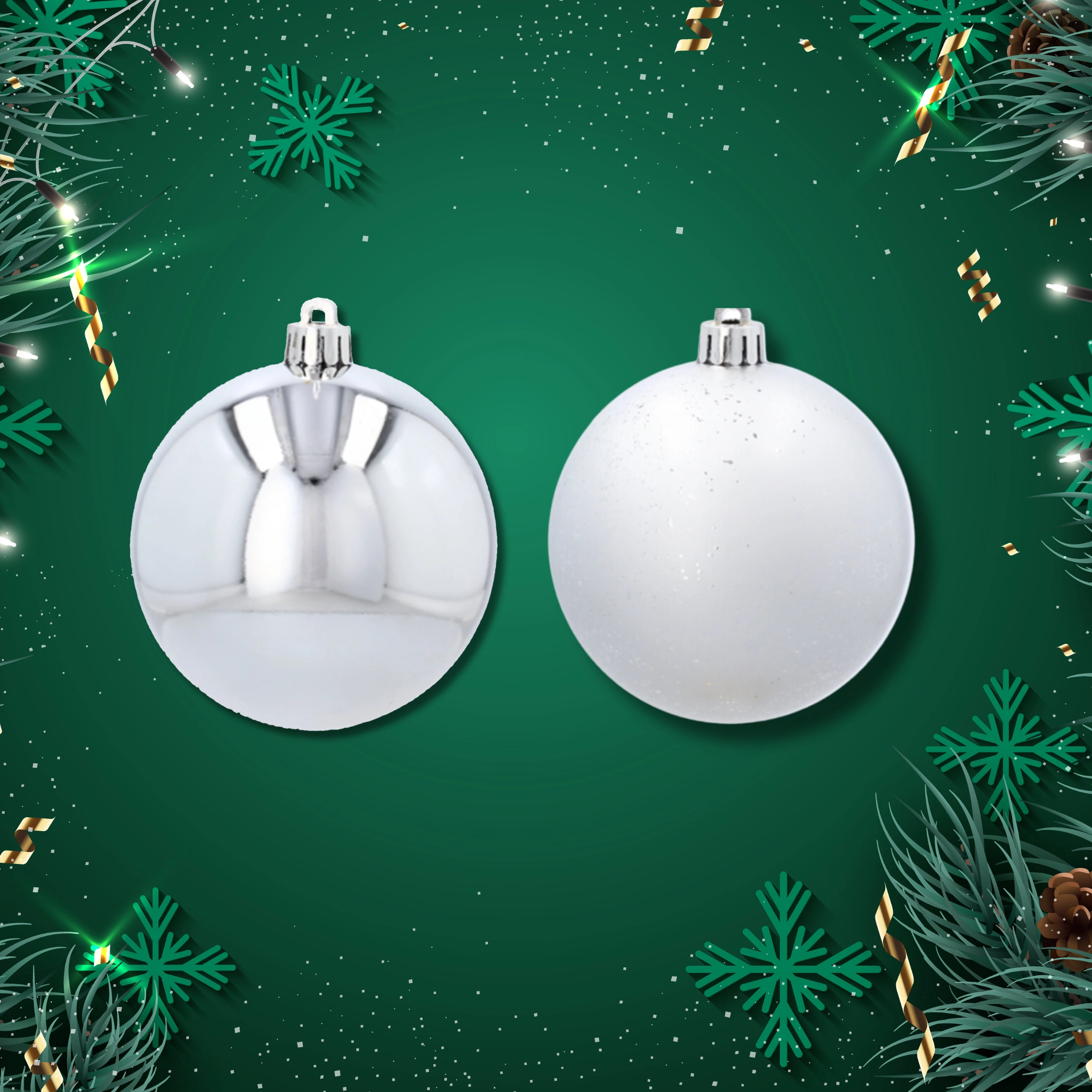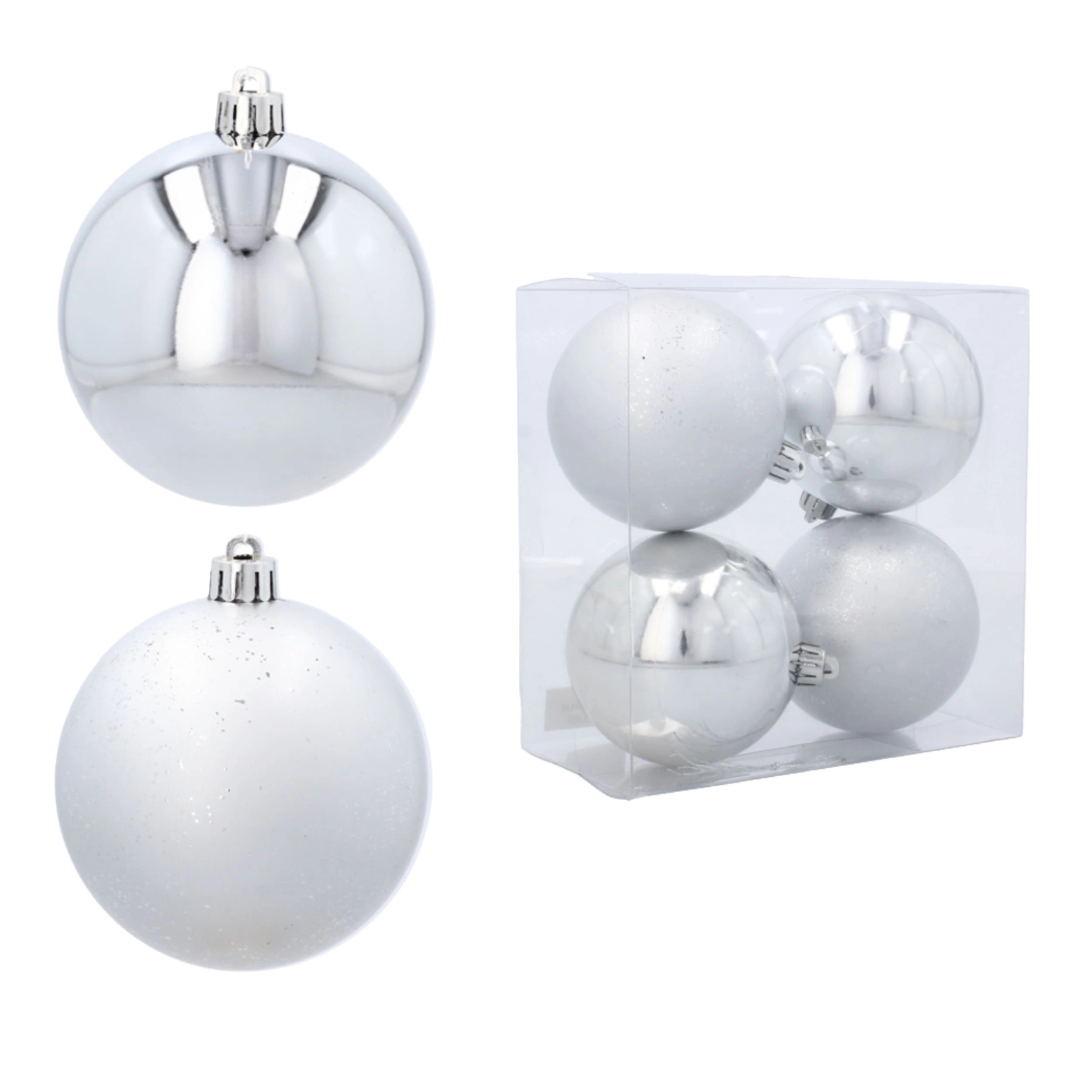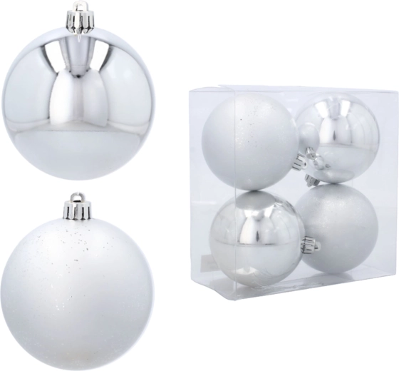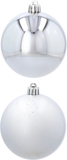 Ces élégantes décorations argentées apportent à votre intérieur un éclat moderne et une ambiance de fête sereine. L’association de surfaces brillantes et finement texturées crée un contraste harmonieux qui se démarque sur tout type de sapin ou de composition.