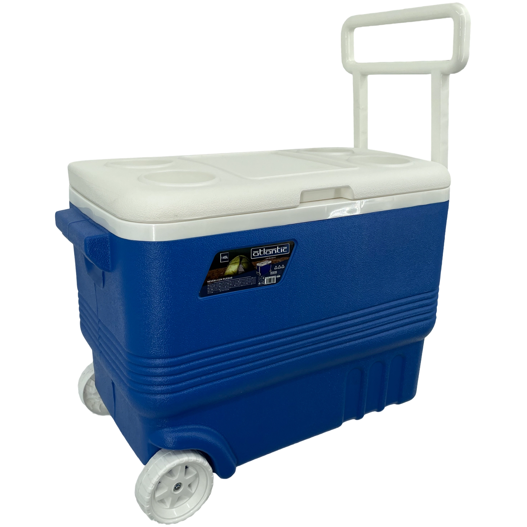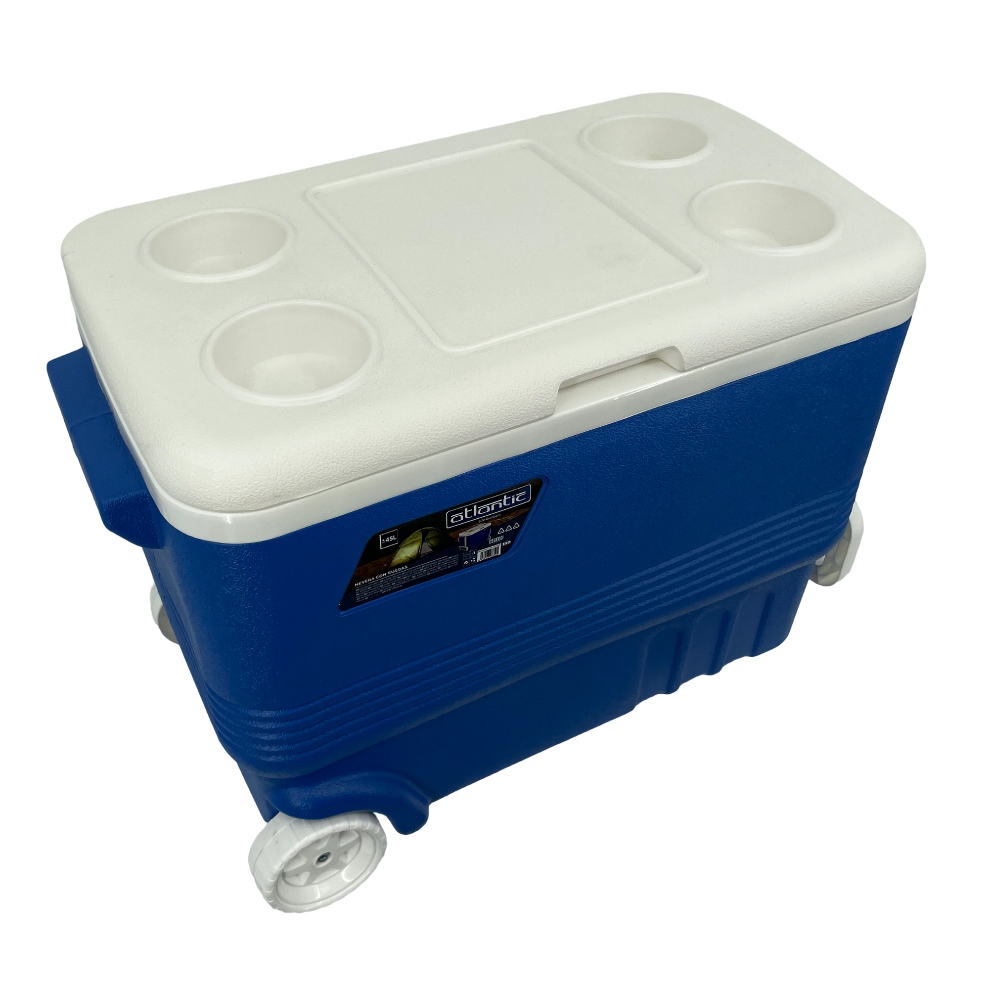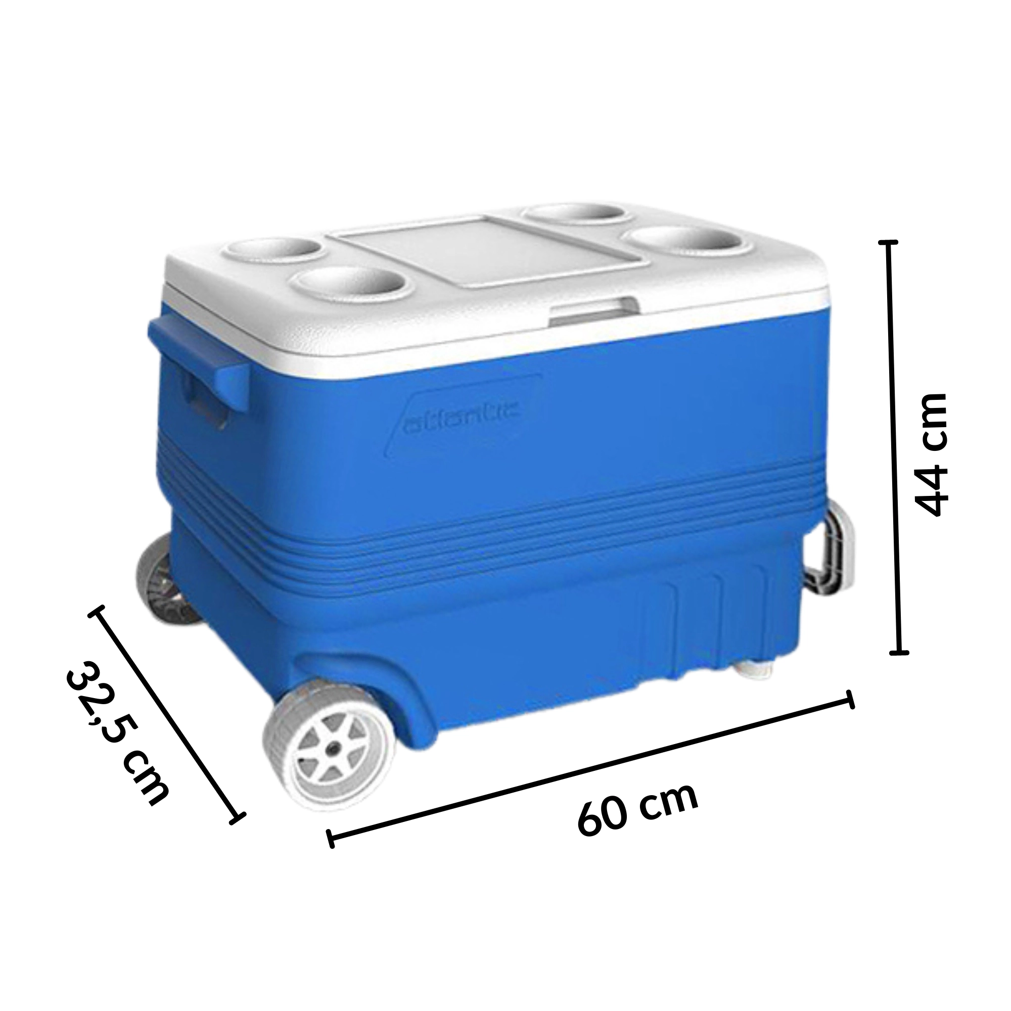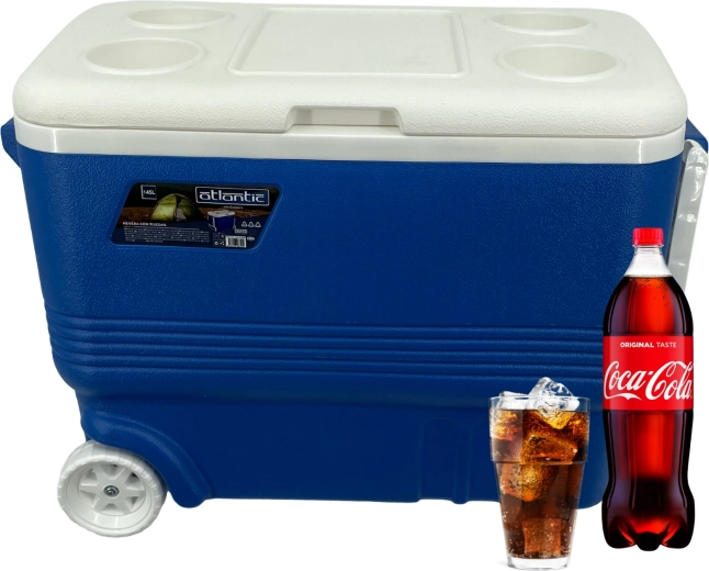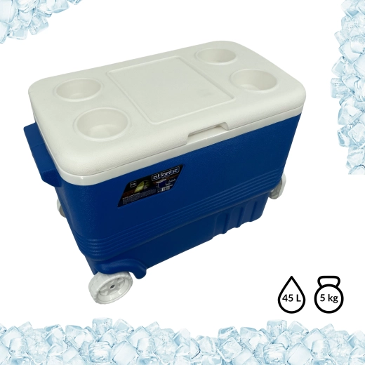 Glacière légère et spacieuse de 45 l avec roulettes pratiques et poignée télescopique, idéale pour les excursions, le camping et la plage. Fabriquée dans l’UE en polypropylène résistant, elle se nettoie facilement et, grâce à une isolation de qualité, maintient le contenu au frais pendant longtemps. Des porte-gobelets intégrés dans le couvercle assurent un confort maximal. Grande capacité, transport facile et refroidissement fiable pour vos boissons et aliments.