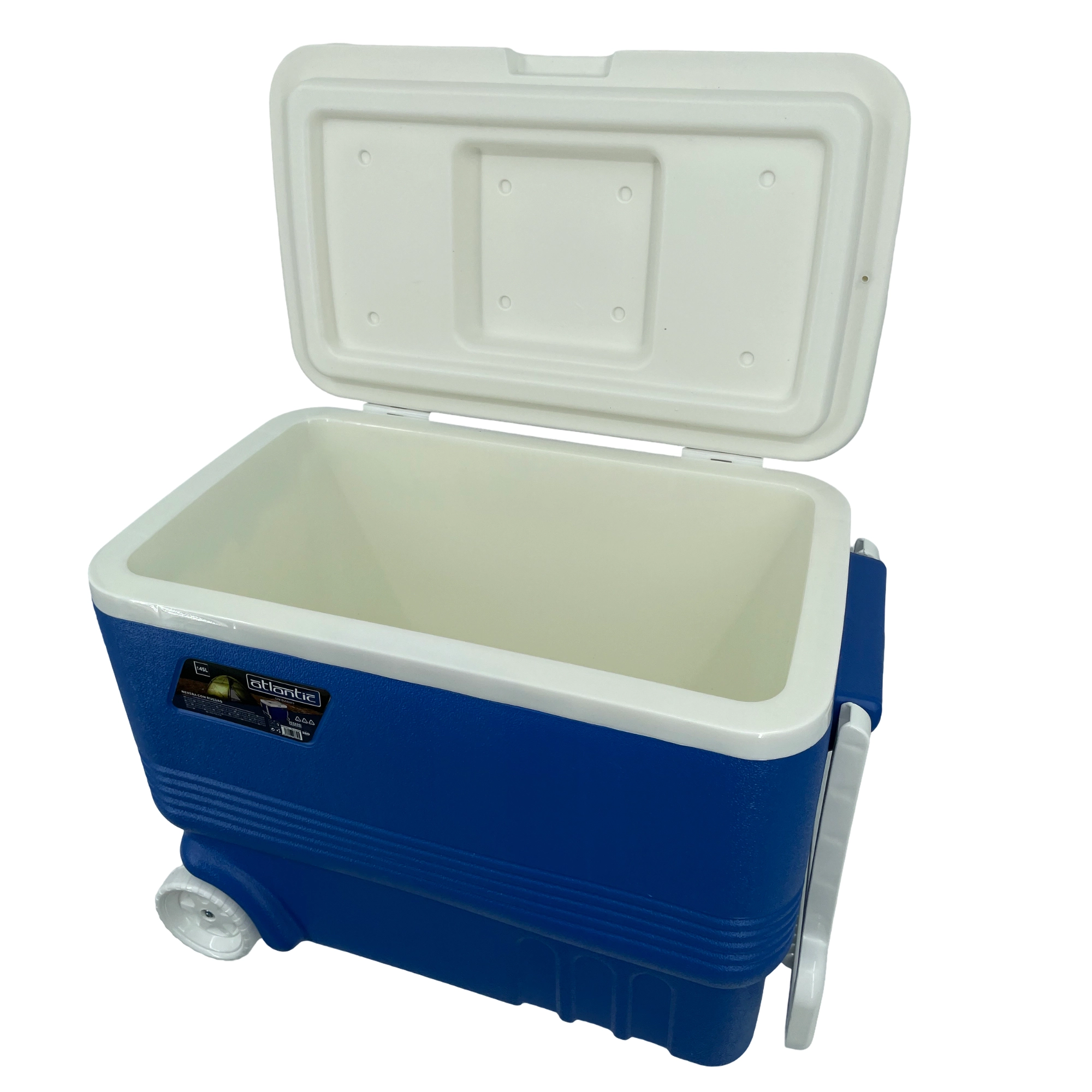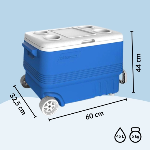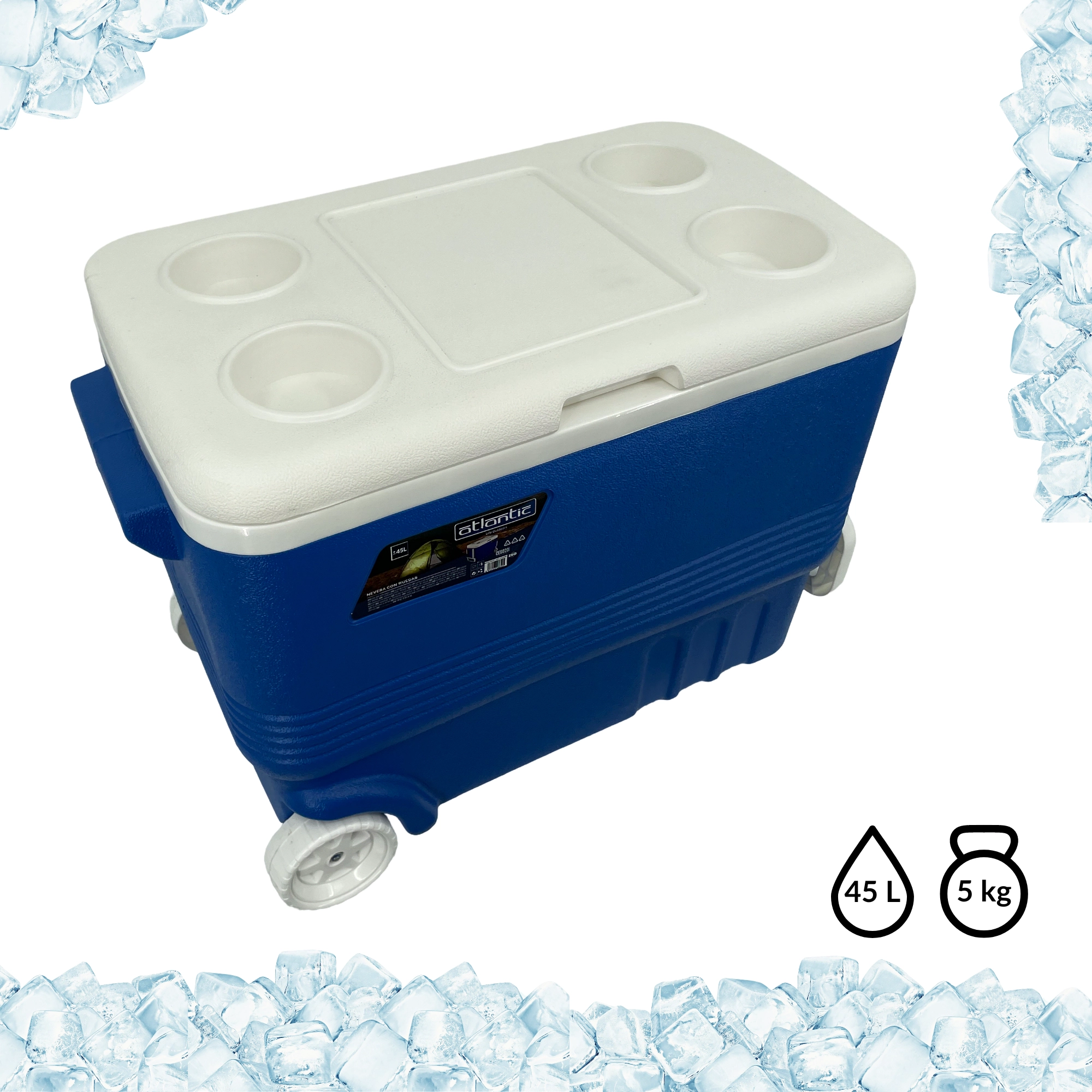 Découvrez le confort et la praticité offerts par la glacière KAMAI Atlantic 45 l. Grâce à ses roulettes robustes et à sa poignée ergonomique, vous la déplacerez sans effort, même entièrement chargée. Une isolation de qualité maintient une basse température pendant longtemps, surtout en combinaison avec des accumulateurs de froid. La fabrication dans l’UE garantit un contact alimentaire sûr et une longue durée de vie.