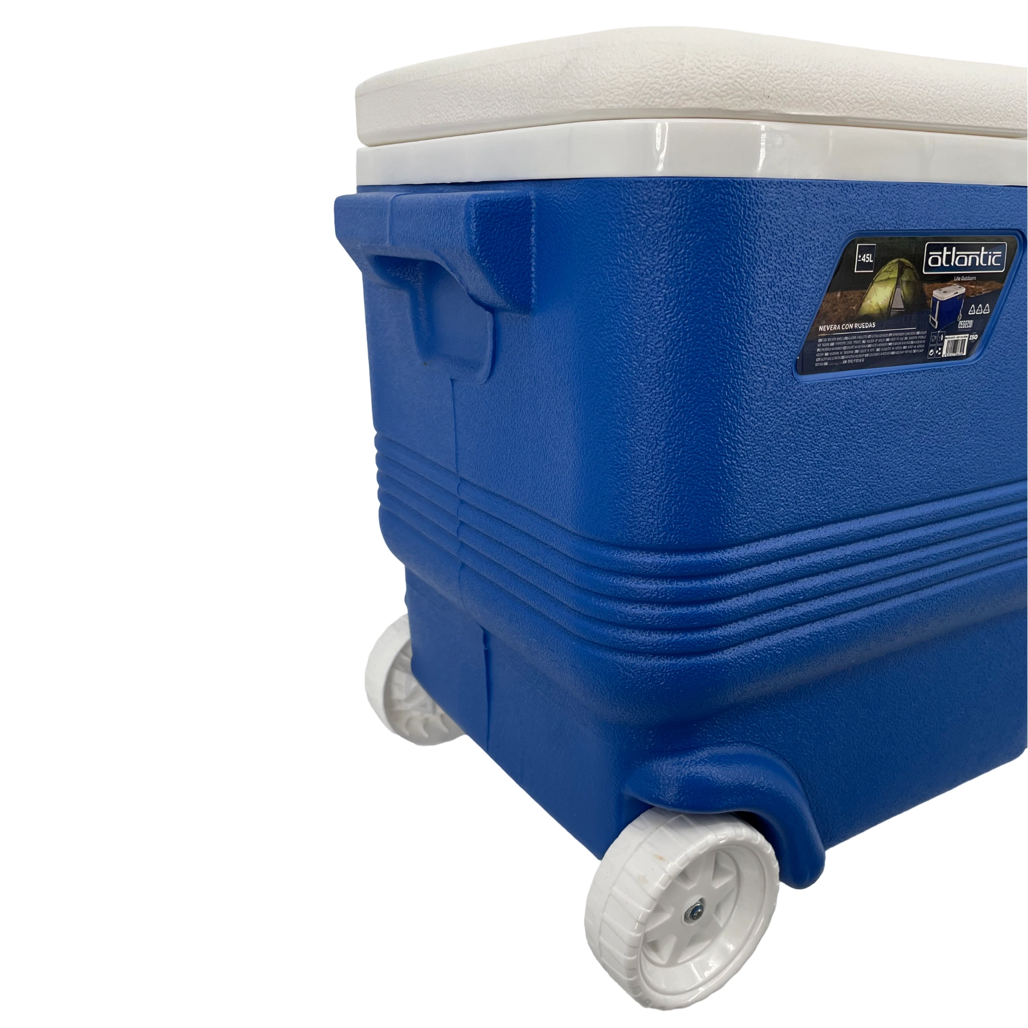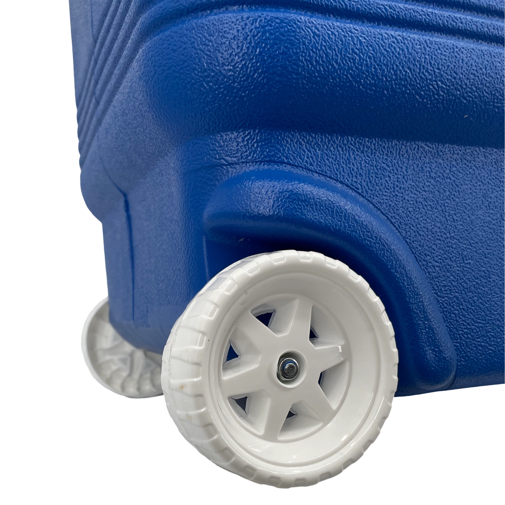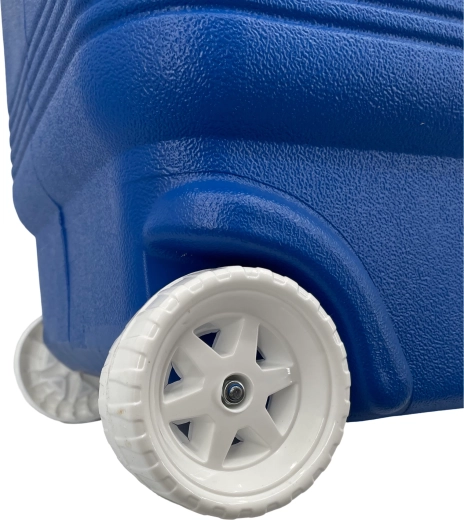 De grandes roues robustes et une poignée pratique assurent un déplacement aisé de la glacière, même bien remplie, sur divers types de surfaces – du camping à la plage.