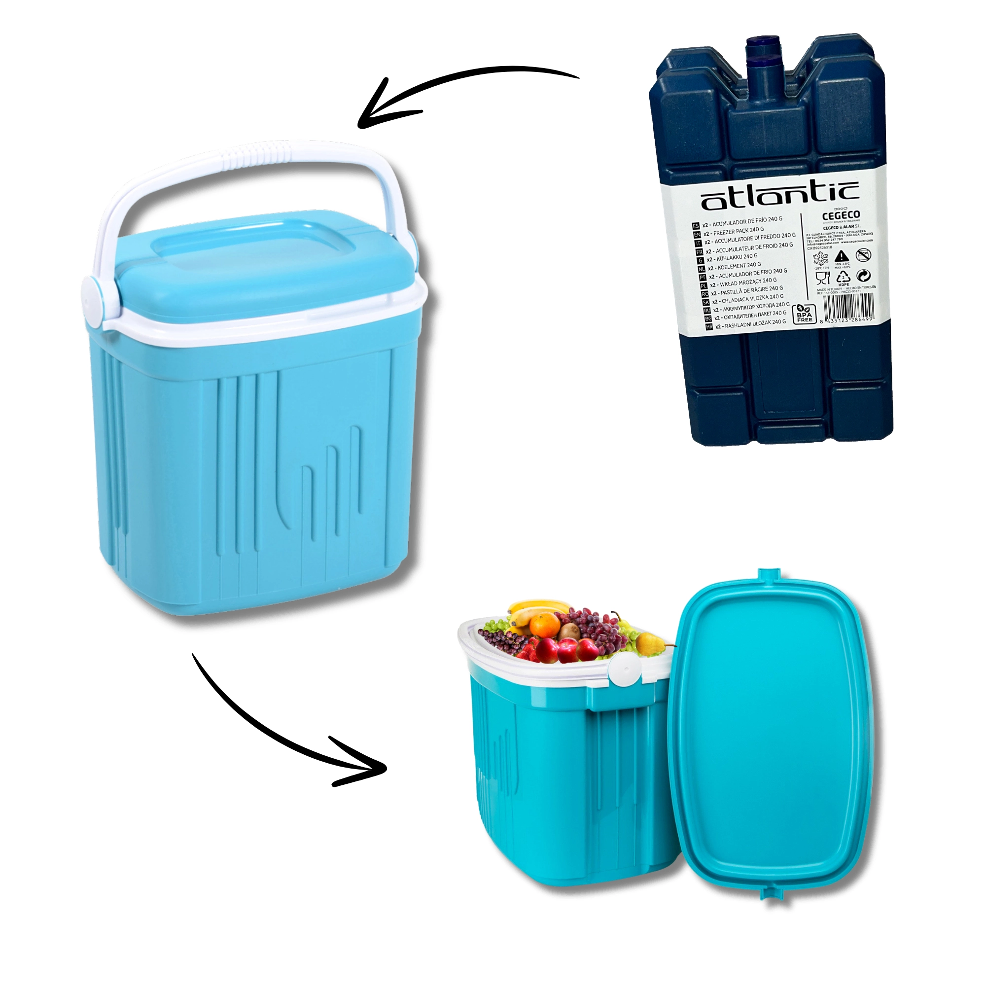 • Refroidissement efficace jusqu’à 12 heures (selon la température ambiante et l’isolation de la glacière)