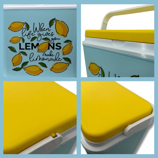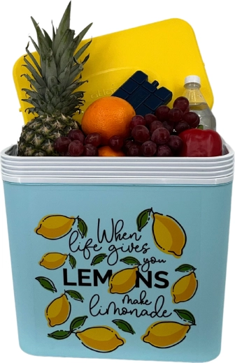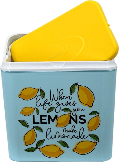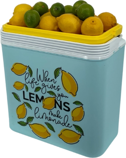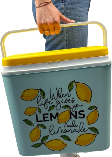 Un motif frais de citrons en combinaison bleu–jaune apporte du peps à vos sorties et rend la glacière facilement reconnaissable.