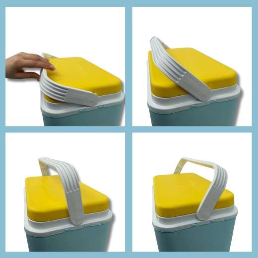 La poignée rabattable avec blocage empêche l’ouverture involontaire du couvercle et facilite le transport où que vous alliez.