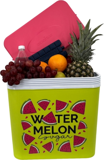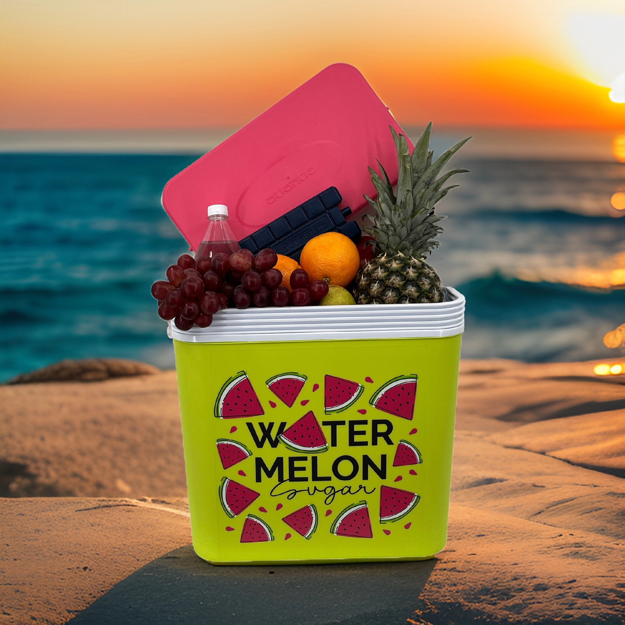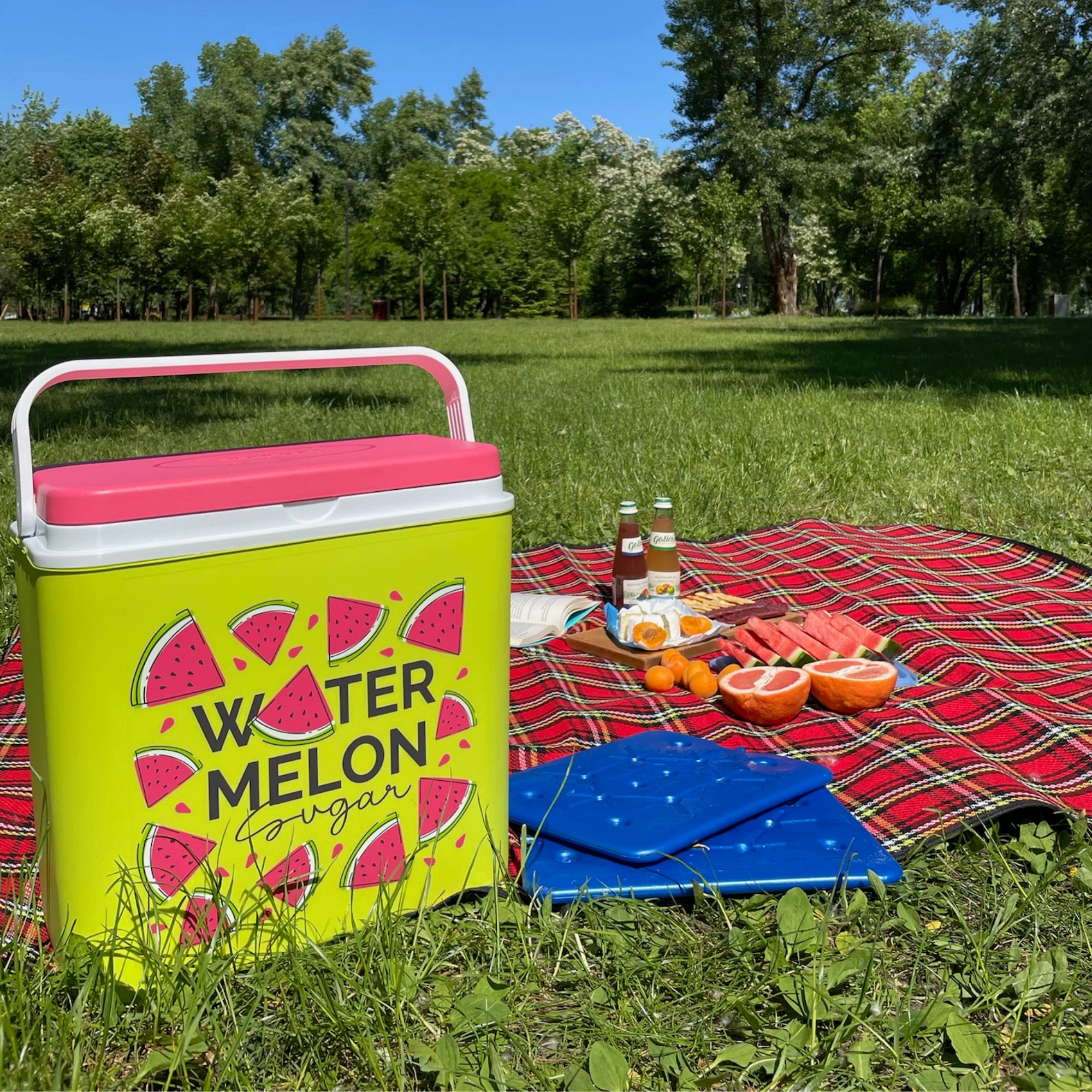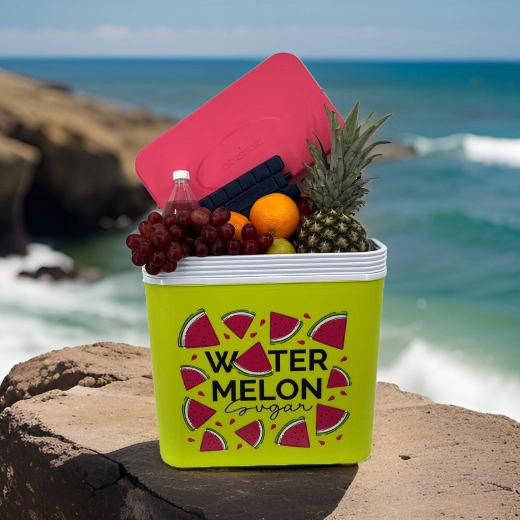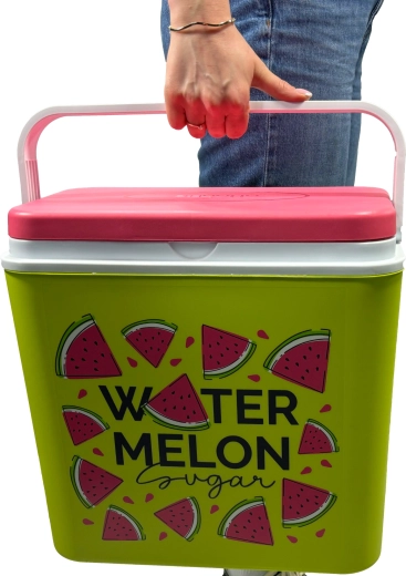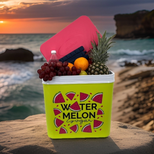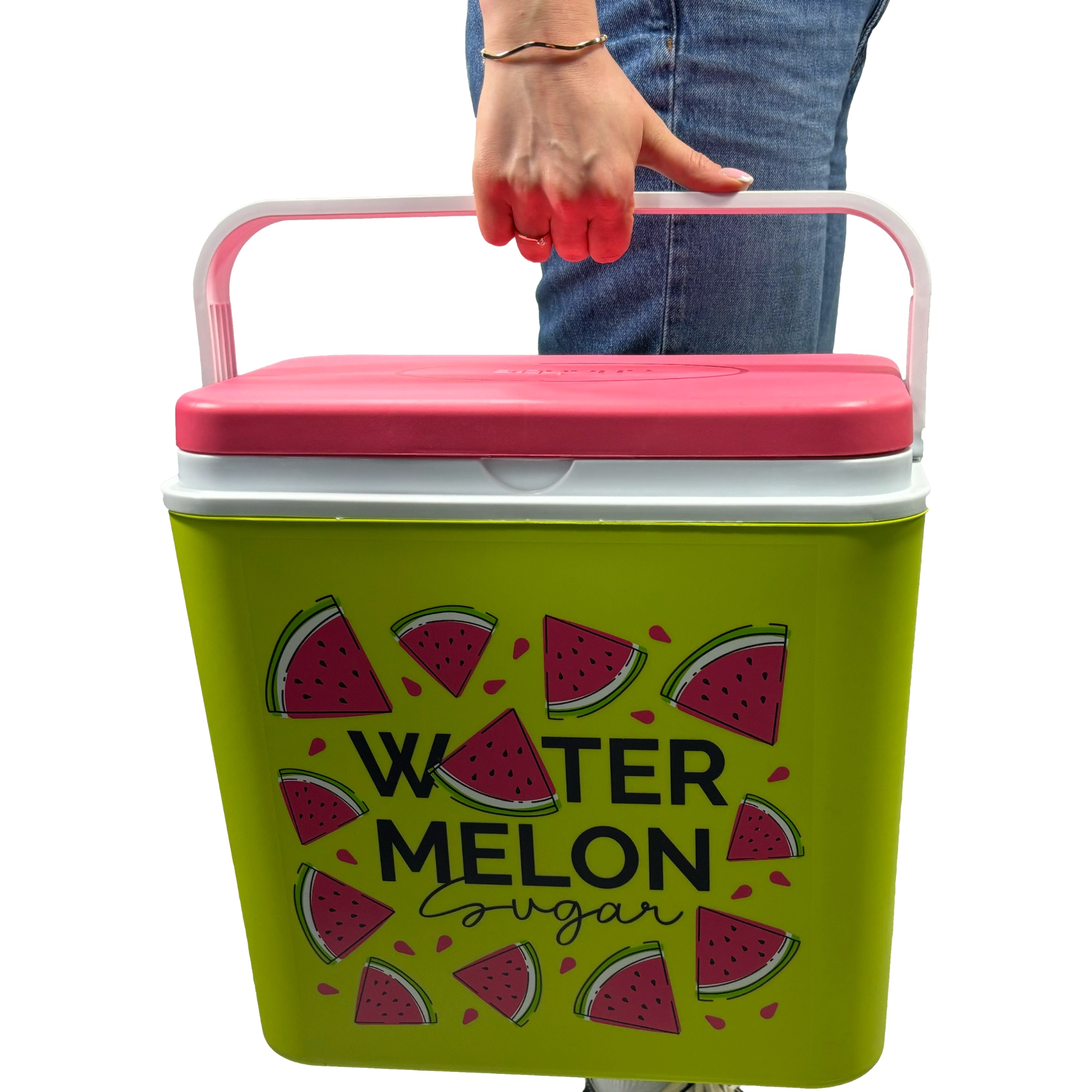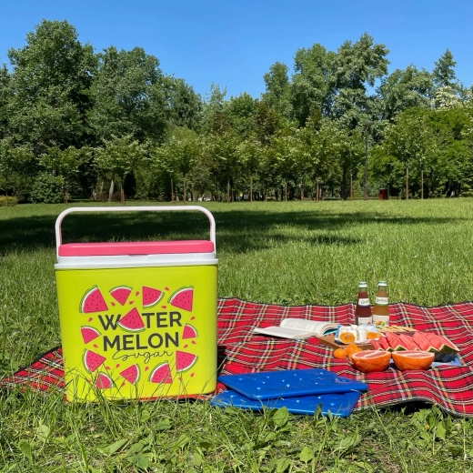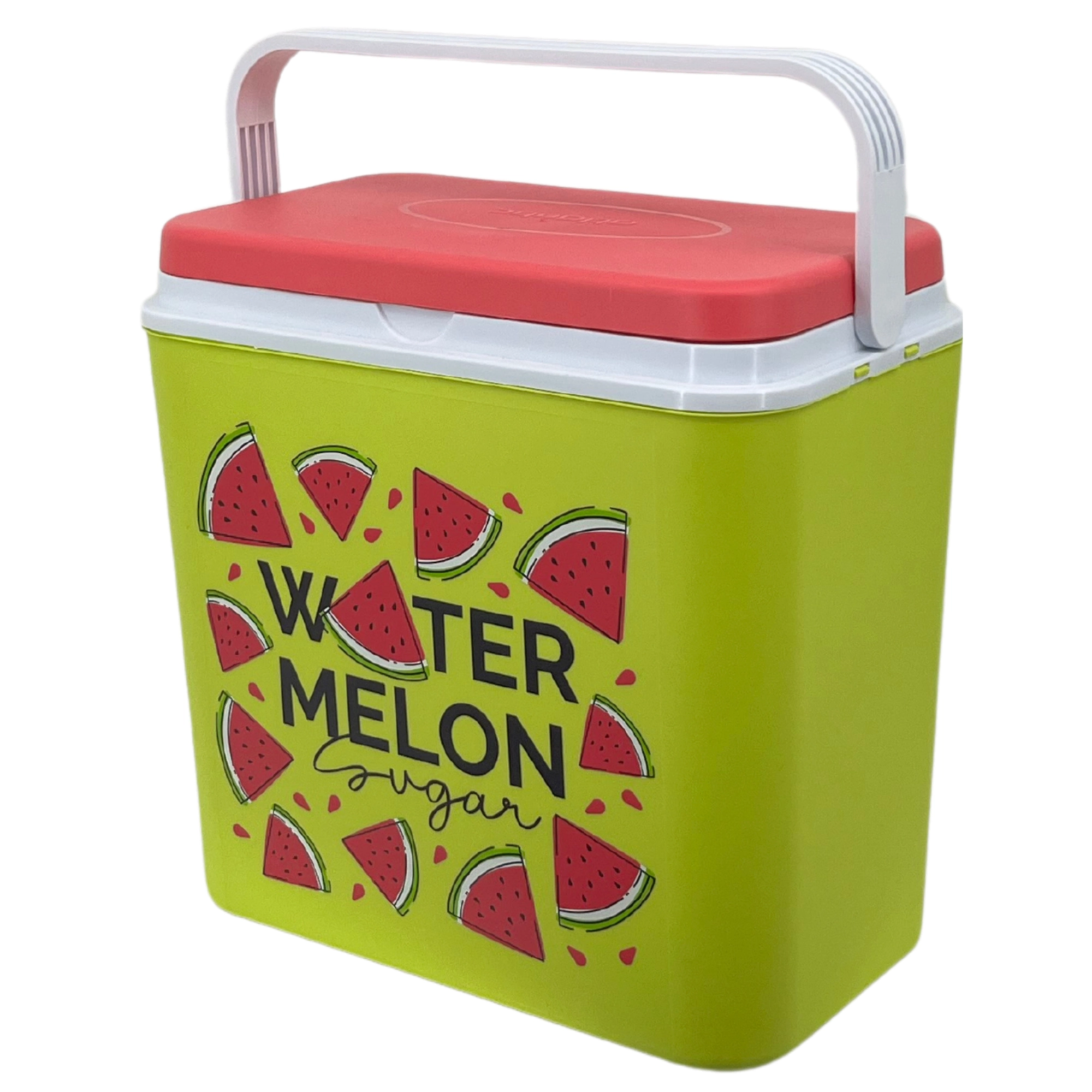 Glacière passive élégante de 24 l qui garde vos boissons et aliments frais longtemps grâce à une isolation de qualité et à l’utilisation d’accumulateurs de froid. Dimensions compactes, poignée robuste pour un transport facile et motif estival WATERMELON en font un choix parfait pour les excursions, la plage et les pique-niques. Fabriqué dans l’UE, sans danger pour le contact alimentaire et facile à nettoyer.