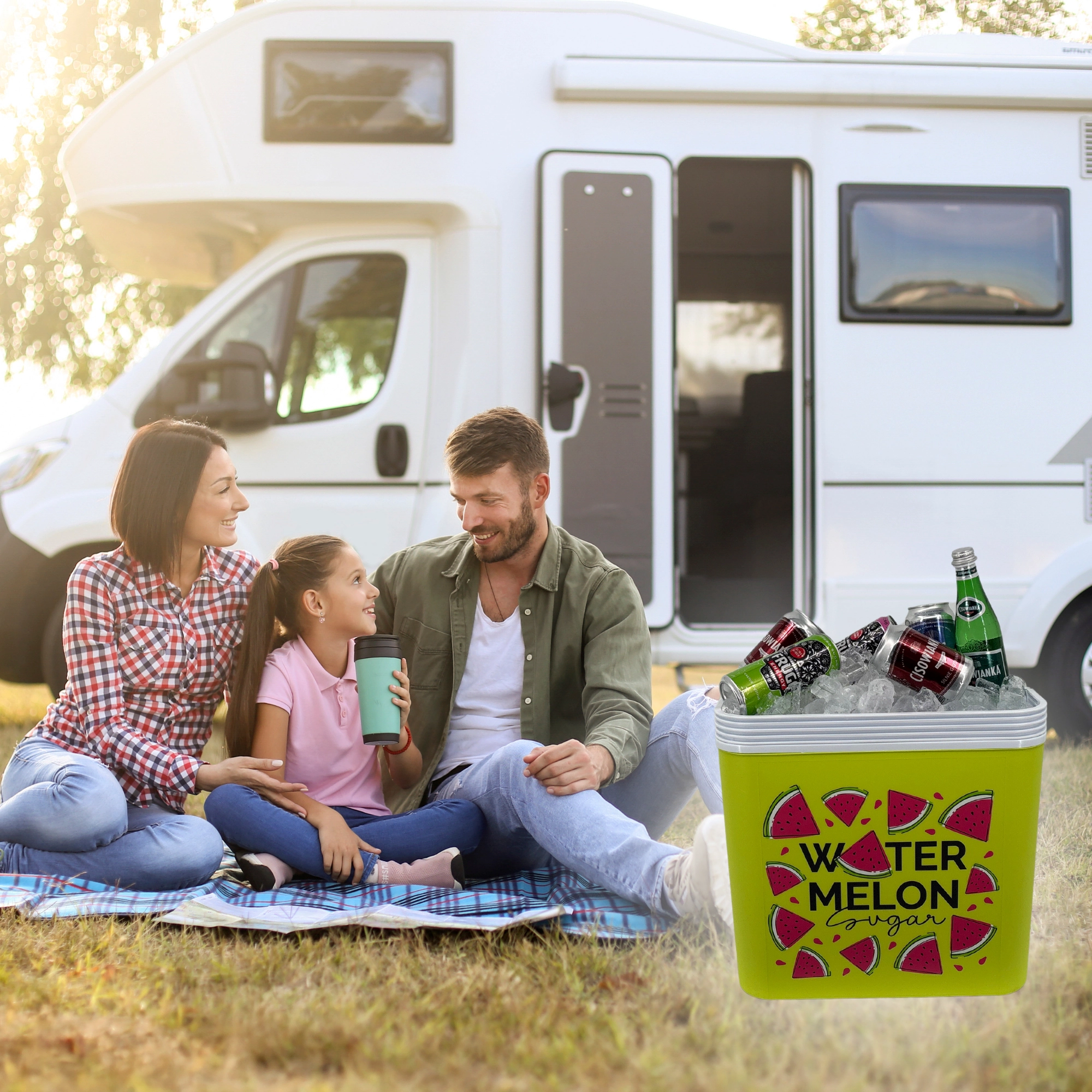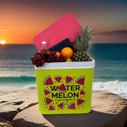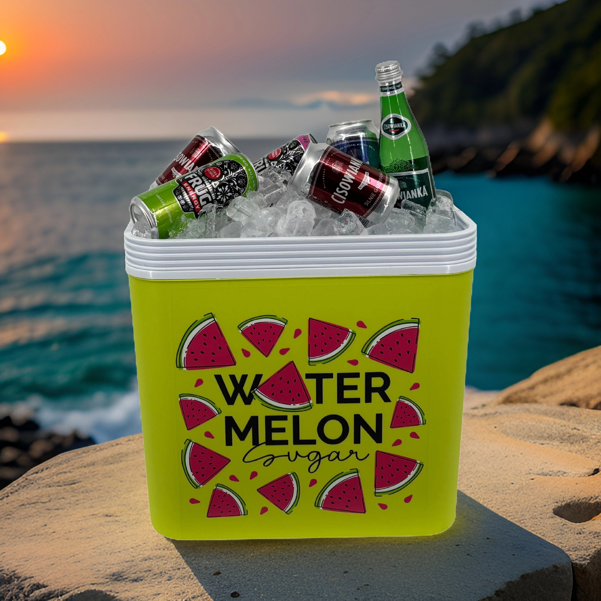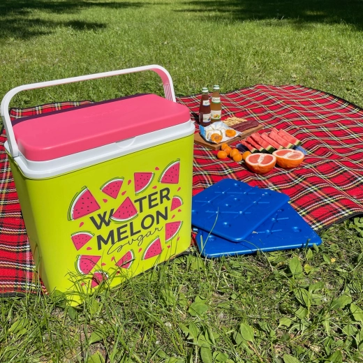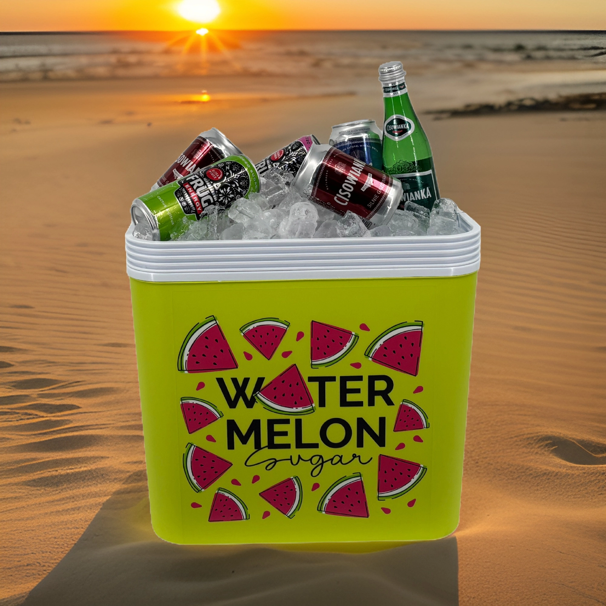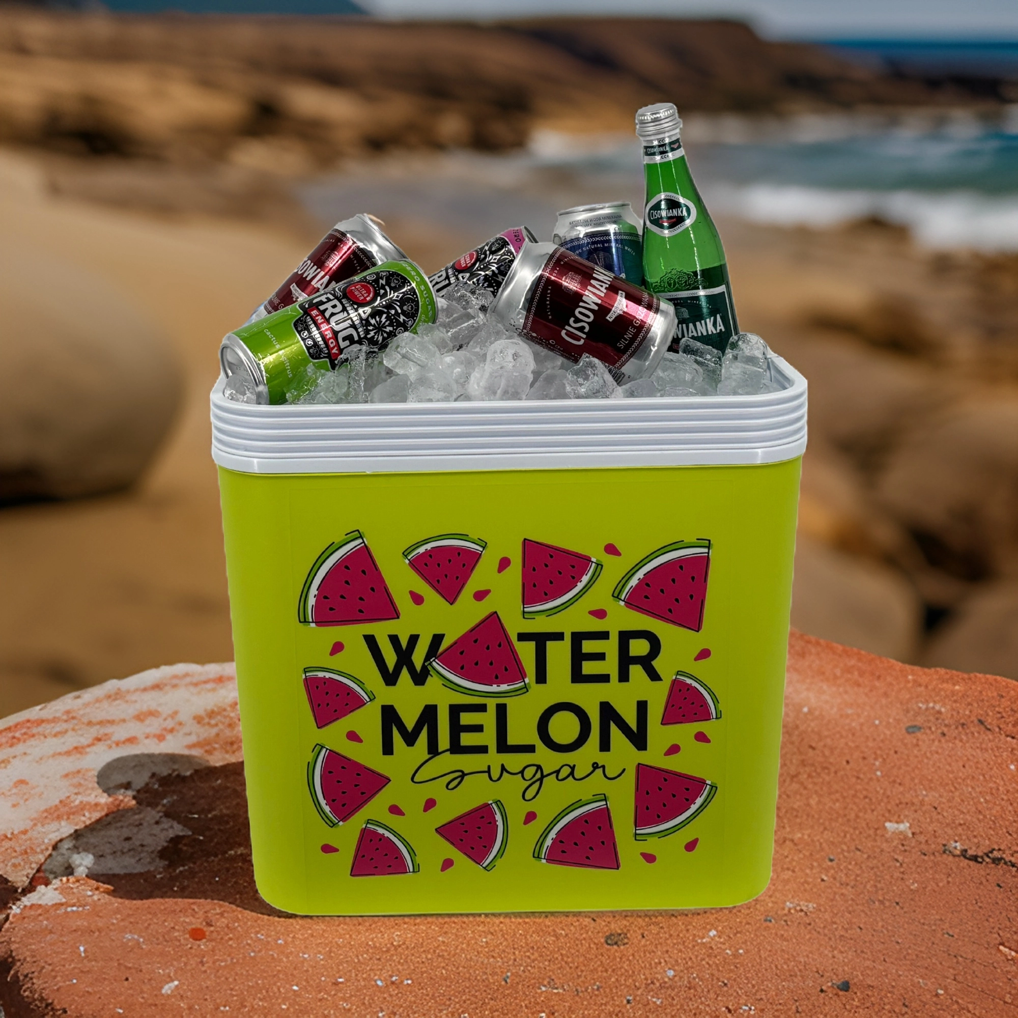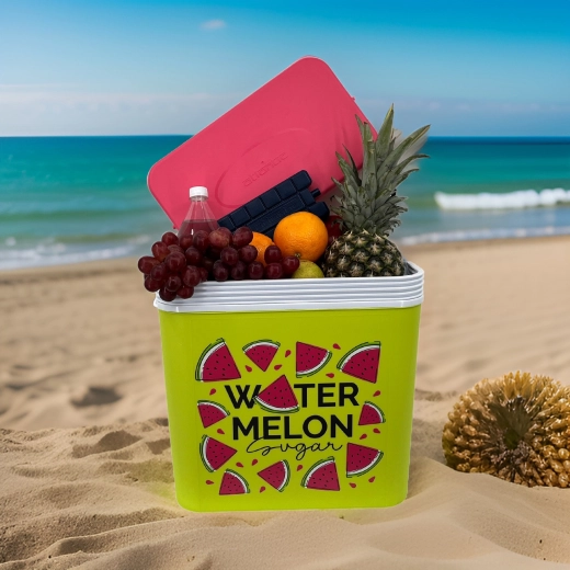 Glacière passive élégante de 24 l qui garde vos boissons et aliments frais longtemps grâce à une isolation de qualité et à l’utilisation d’accumulateurs de froid. Dimensions compactes, poignée robuste pour un transport facile et motif estival WATERMELON en font un choix parfait pour les excursions, la plage et les pique-niques. Fabriqué dans l’UE, sans danger pour le contact alimentaire et facile à nettoyer.