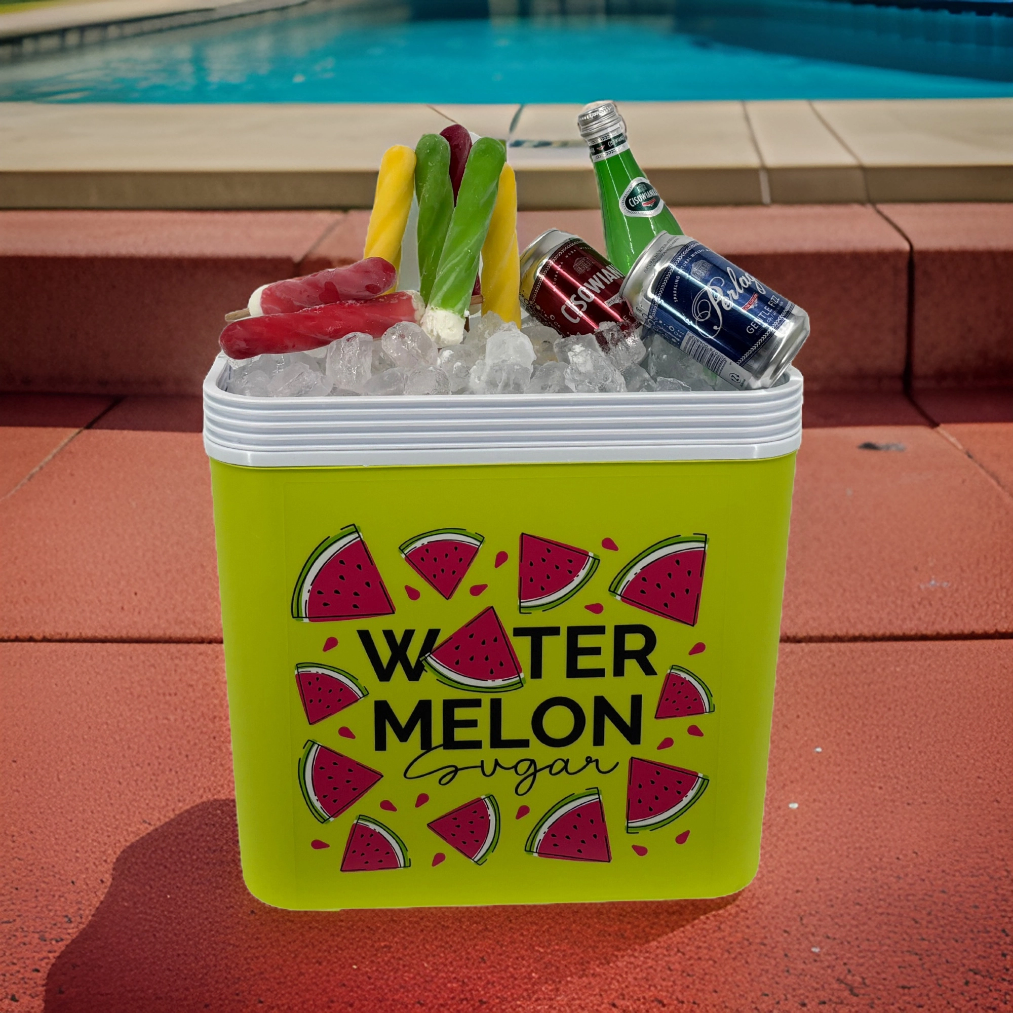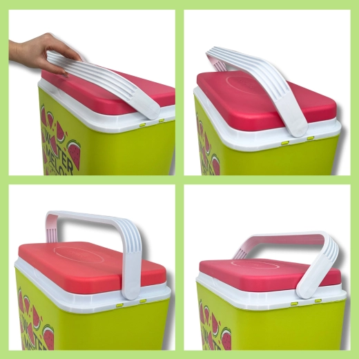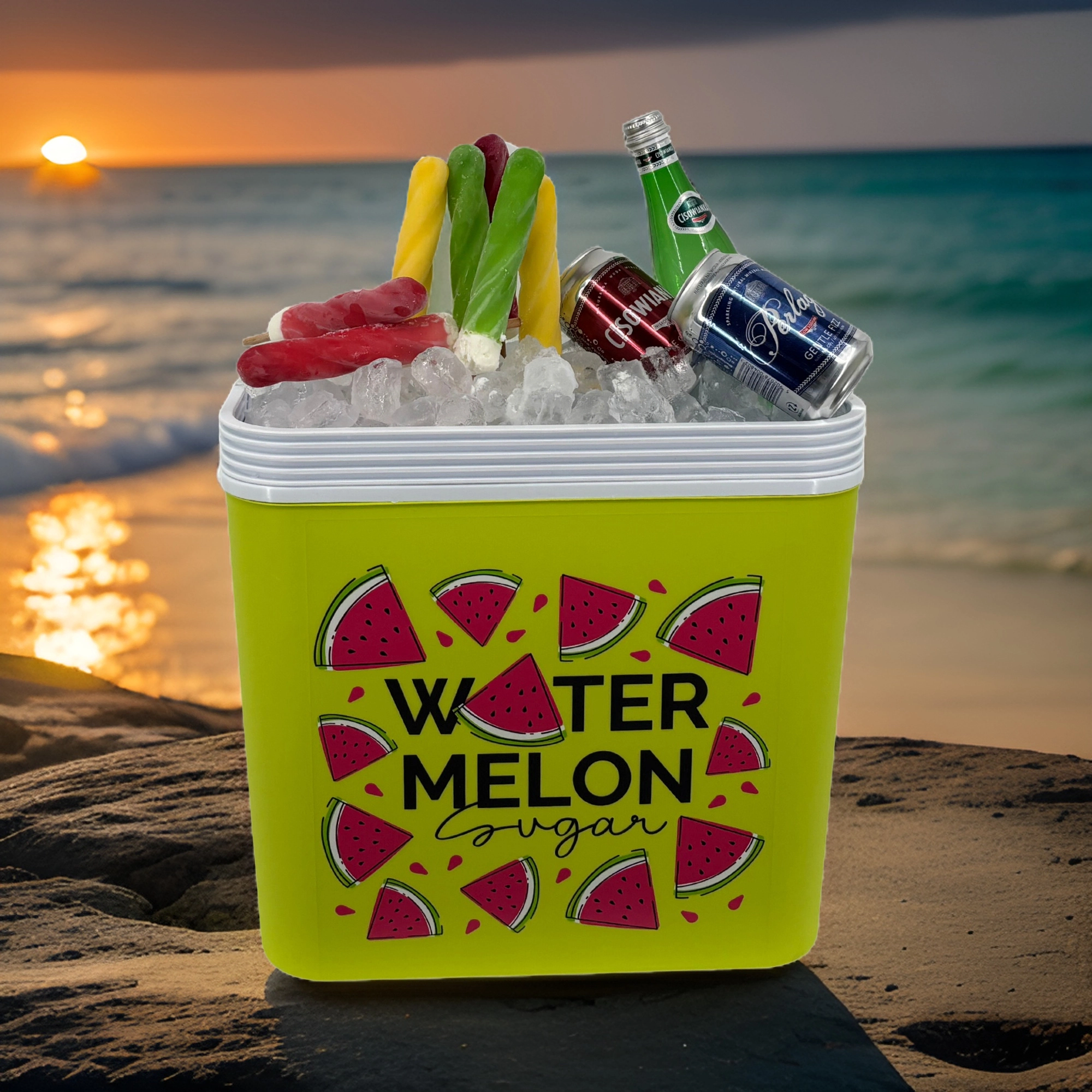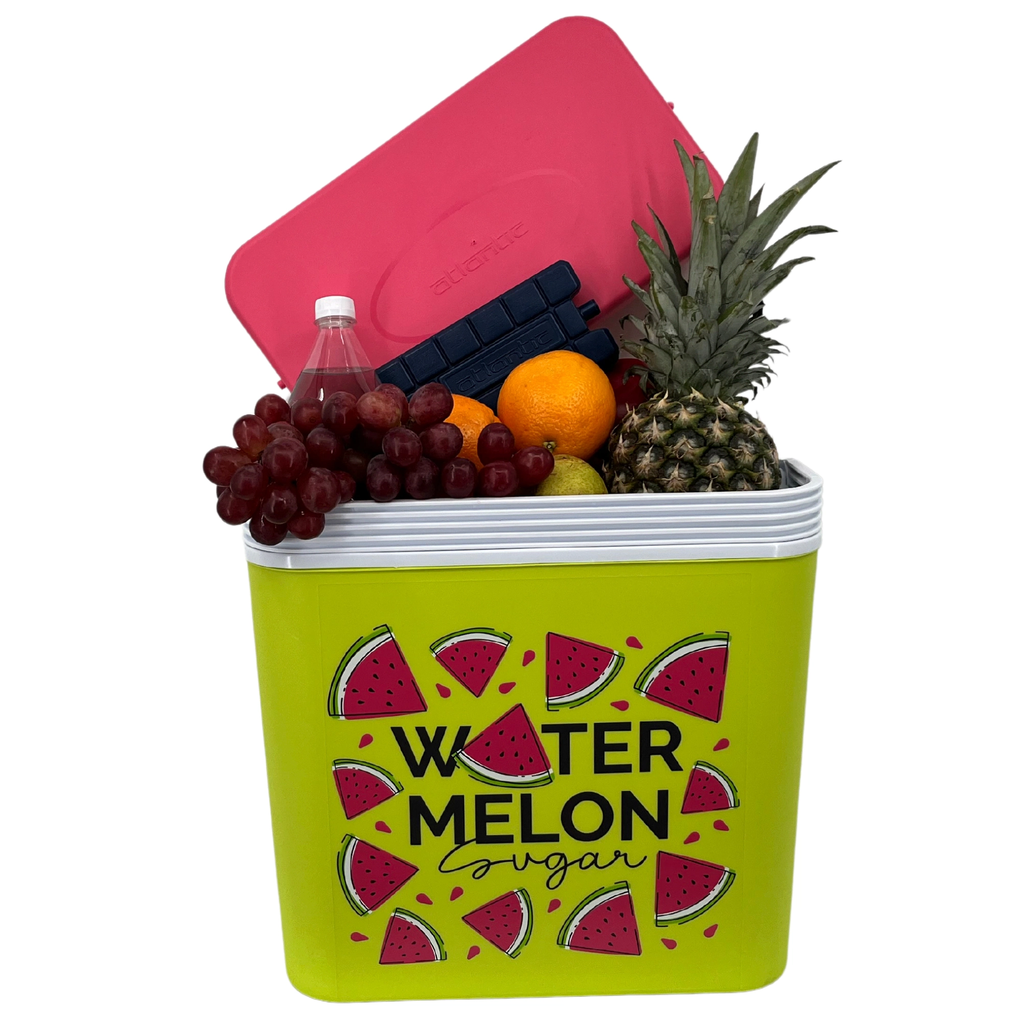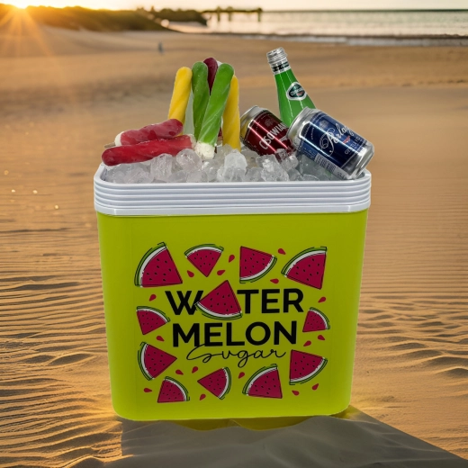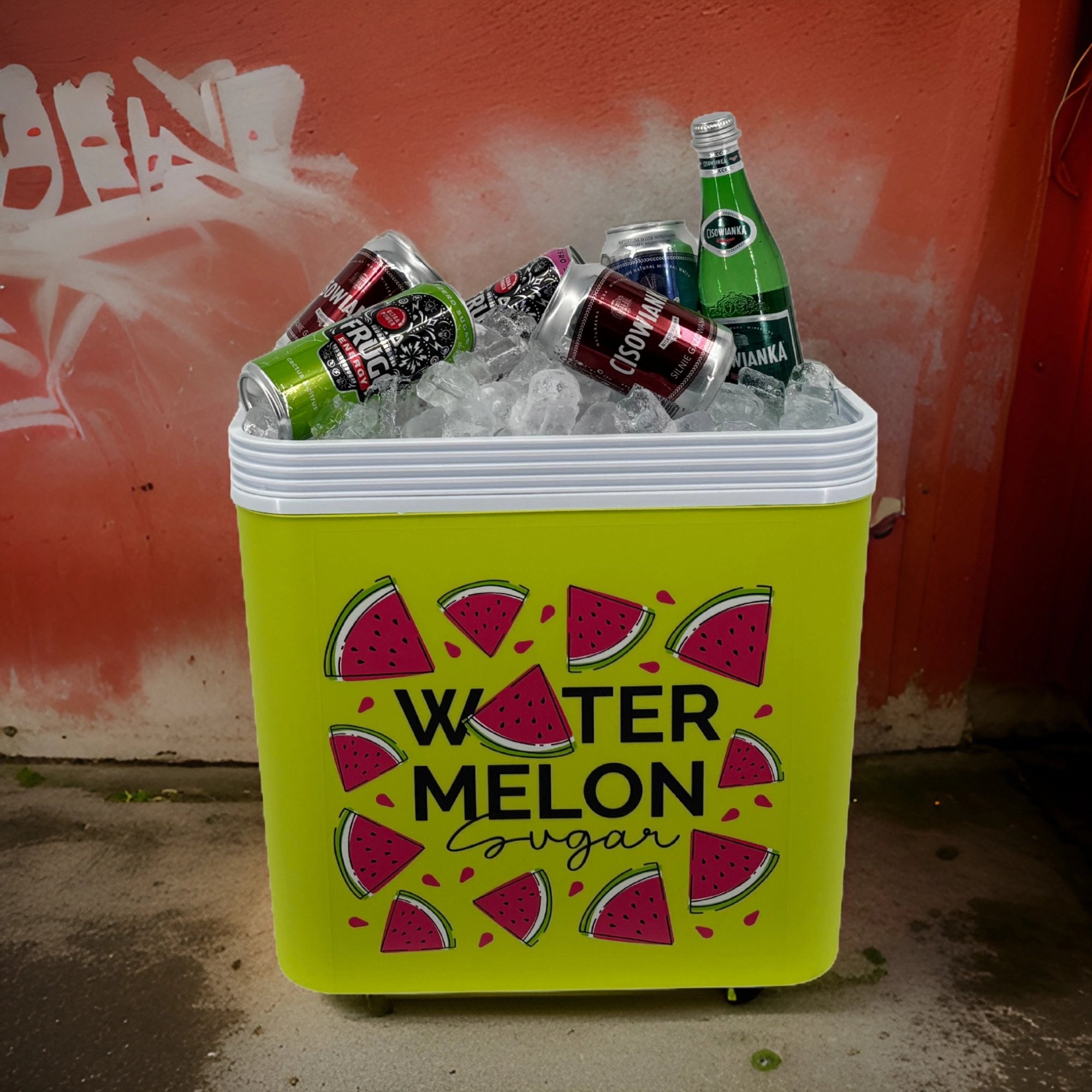 Glacière passive élégante de 24 l qui garde vos boissons et aliments frais longtemps grâce à une isolation de qualité et à l’utilisation d’accumulateurs de froid. Dimensions compactes, poignée robuste pour un transport facile et motif estival WATERMELON en font un choix parfait pour les excursions, la plage et les pique-niques. Fabriqué dans l’UE, sans danger pour le contact alimentaire et facile à nettoyer.