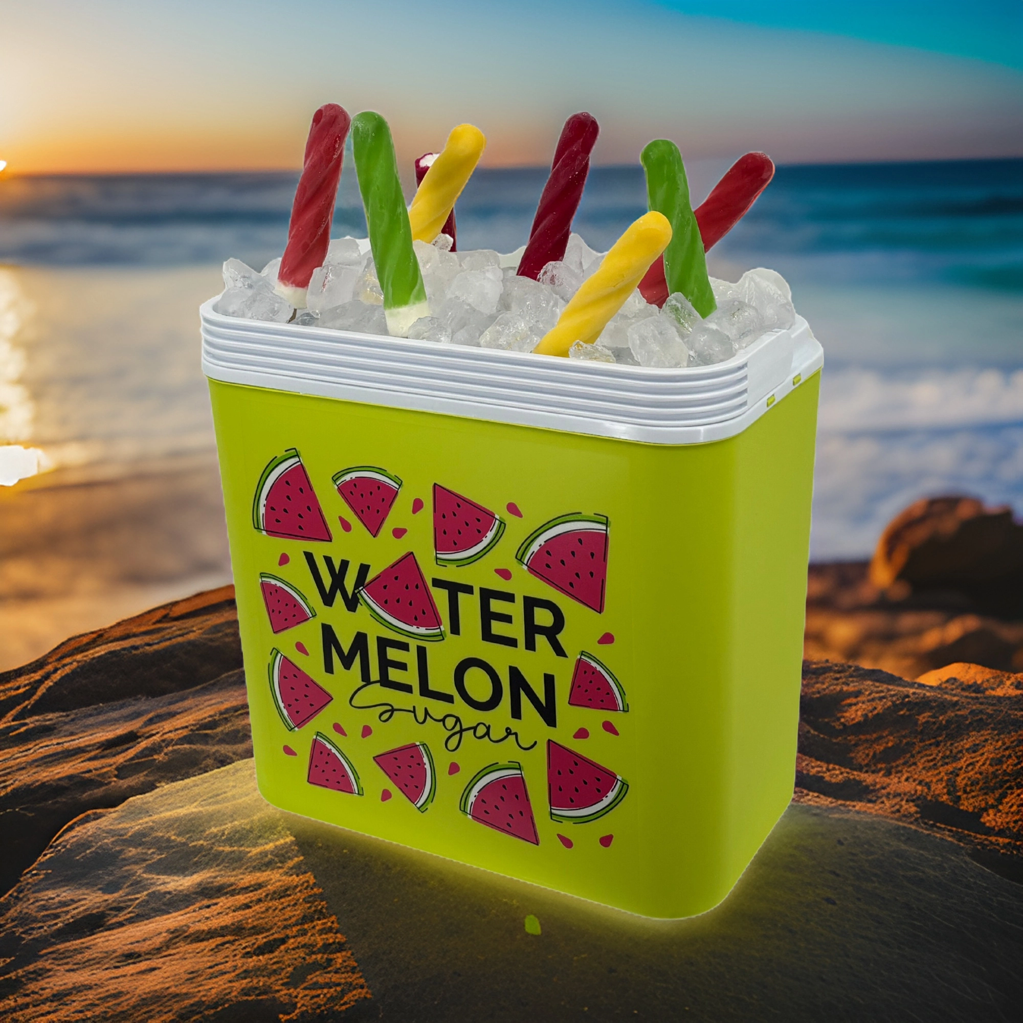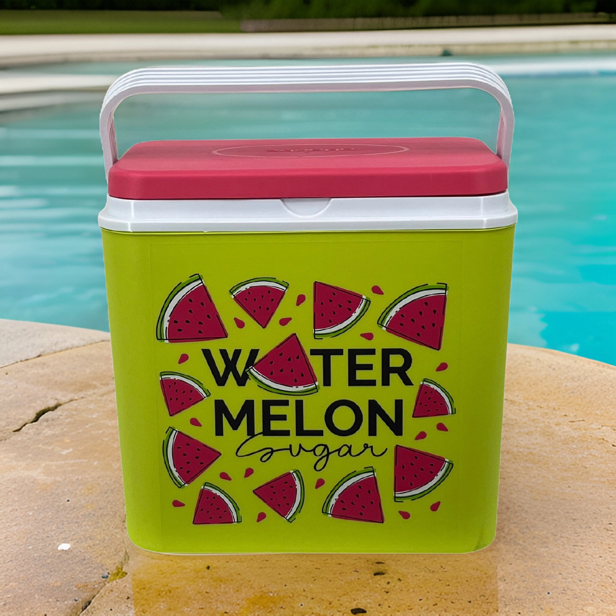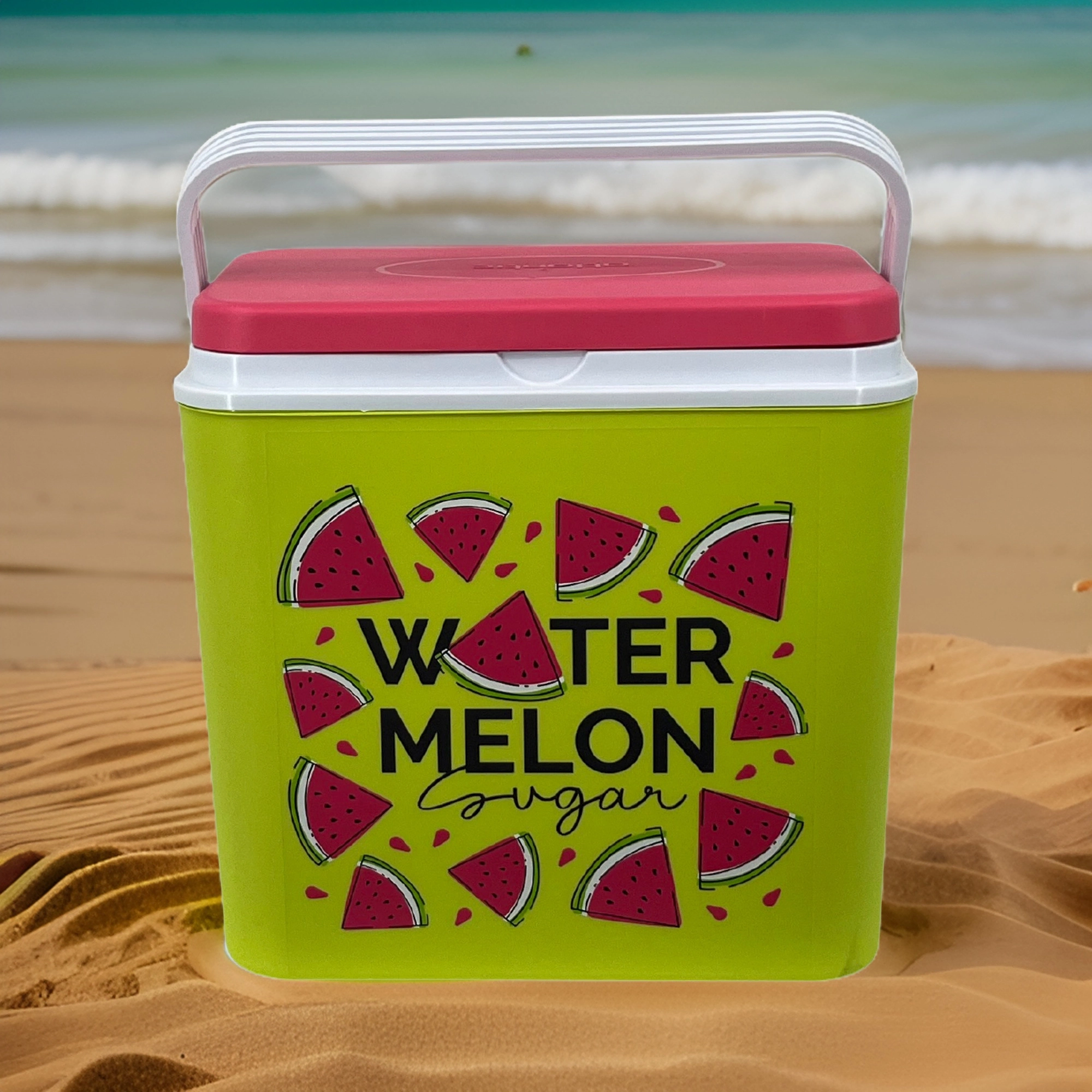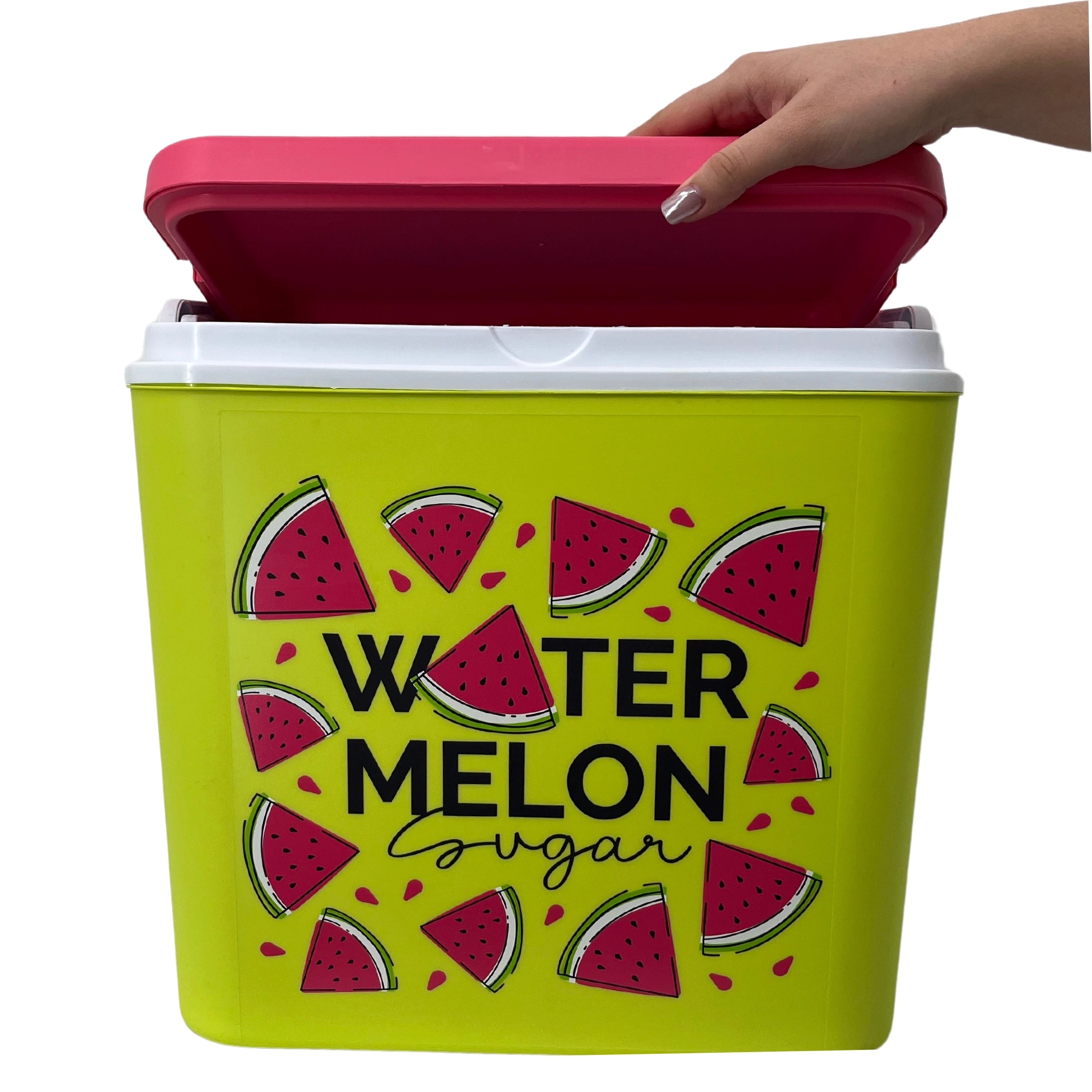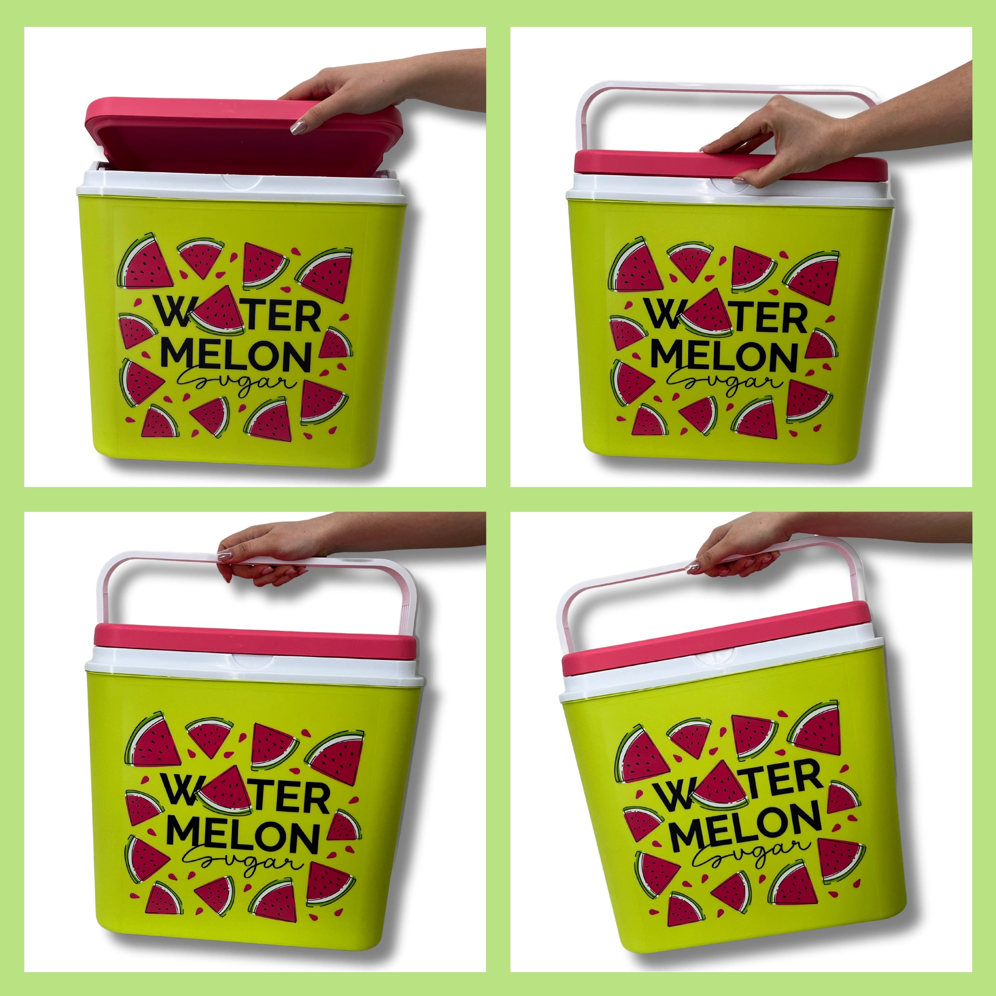 Glacière passive élégante de 24 l qui garde vos boissons et aliments frais longtemps grâce à une isolation de qualité et à l’utilisation d’accumulateurs de froid. Dimensions compactes, poignée robuste pour un transport facile et motif estival WATERMELON en font un choix parfait pour les excursions, la plage et les pique-niques. Fabriqué dans l’UE, sans danger pour le contact alimentaire et facile à nettoyer.