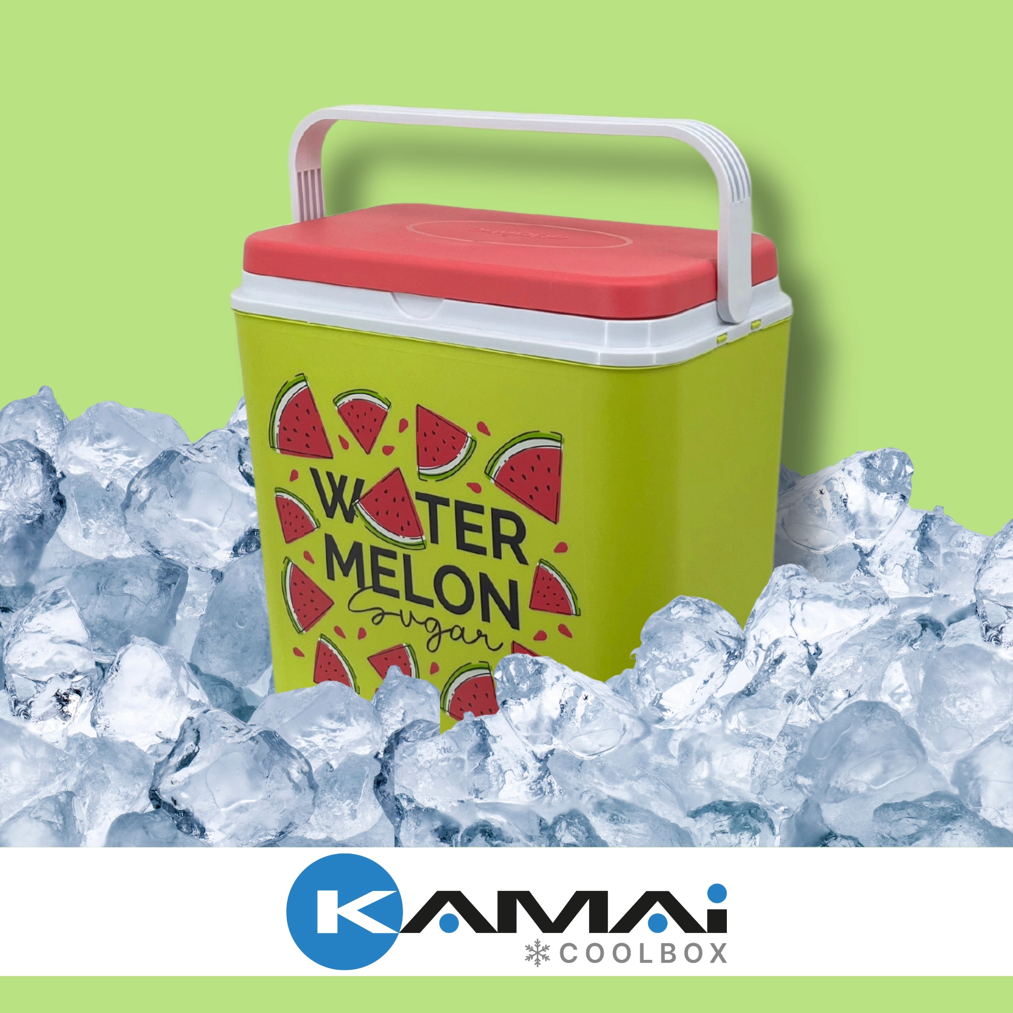 Kamai Coolbox Watermelon 24 l est une glacière de voyage polyvalente qui se distingue par un refroidissement passif fiable avec accumulateurs, une construction légère et résistante en polypropylène, et un attrayant imprimé pastèque. La hauteur intérieure accueille même des bouteilles de 2 litres en position verticale, pour avoir toujours suffisamment de boissons fraîches à portée de main.