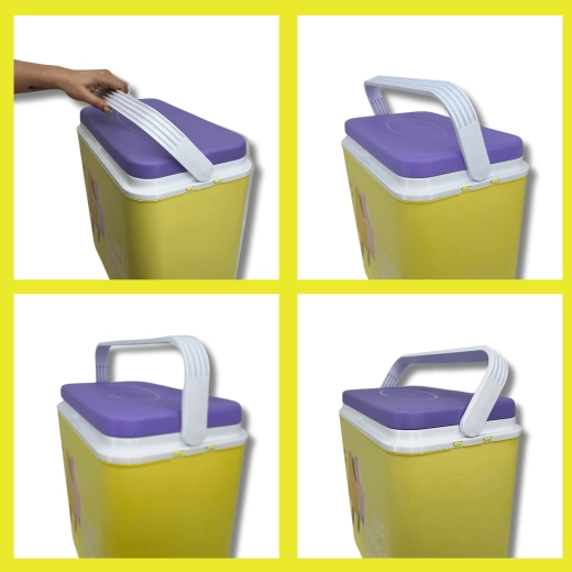 Sa conception pratique avec une poignée profilée et résistante assure un transport confortable. La hauteur intérieure permet de placer une bouteille de 2 l à la verticale; la glacière peut accueillir jusqu’à 8 × 1,5 l ou 3 × 2 l côte à côte. Le polypropylène est facile à entretenir et répond aux normes européennes de contact alimentaire.
