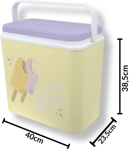 Une glacière portable élégante de 24 l pour accumulateurs de froid garde vos boissons et aliments frais plus longtemps lors d’excursions, de pique-niques ou à la plage. Grâce à une fabrication européenne de qualité, une isolation efficace et une poignée robuste, elle est idéale pour les week-ends comme pour les trajets plus longs. Son design estival « I LOVE SUMMER DAYS » et son couvercle violet pastel apportent une touche de fraîcheur à chaque sortie. Capacité 24 l, isolation performante, nettoyage facile, poignée robuste et qualité UE.