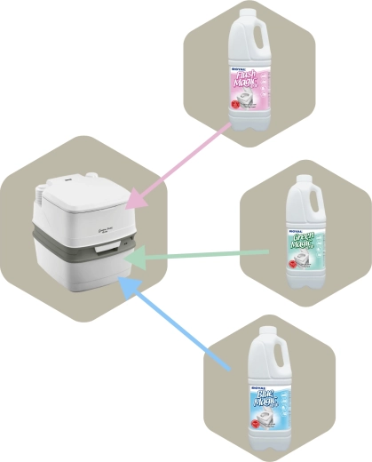 Fonctionne parfaitement avec les systèmes à cassette en deux parties et les WC portatifs. Préserve les joints et les plastiques, et facilite l’utilisation et l’entretien sans problème.
