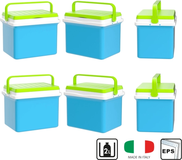 La hauteur intérieure d’environ 35,5 cm permet de placer des bouteilles de 2 l en position verticale. La glacière est ainsi idéale pour les bouteilles, canettes et aliments frais. La poignée profilée pliante facilite le transport, et ses dimensions compactes permettent un rangement aisé dans le coffre d’une voiture, d’un camping-car ou d’un bateau.