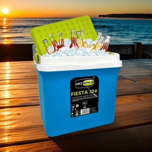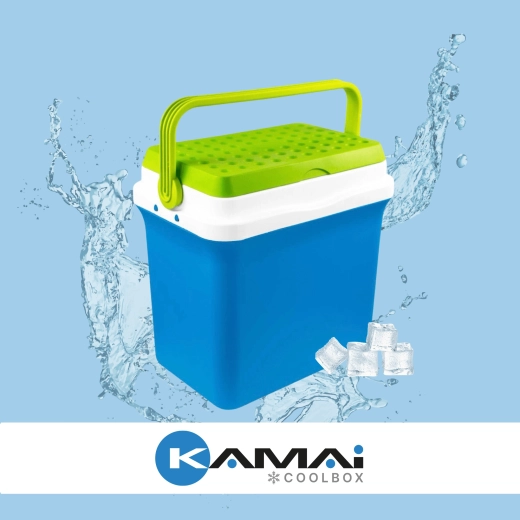 La glacière portable KAMAI Fiesta 29,5 l, compacte et spacieuse, garde vos boissons et aliments au frais longtemps grâce à une isolation passive efficace avec accumulateurs de froid. Idéale pour les pique-niques, le camping, la plage et les voyages en voiture. Elle dispose d’une poignée pliante robuste, d’un couvercle stable et de dimensions adaptées au transport en voiture. Fabriquée dans l’UE selon des normes alimentaires strictes.