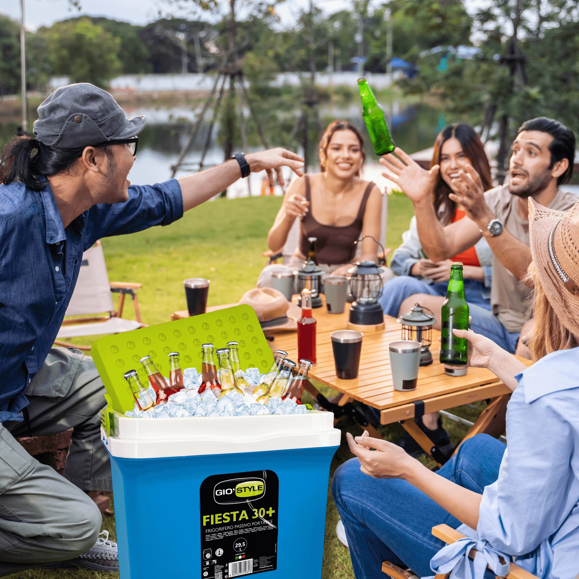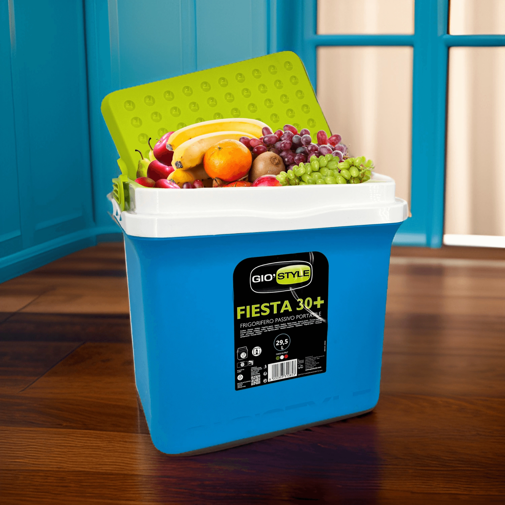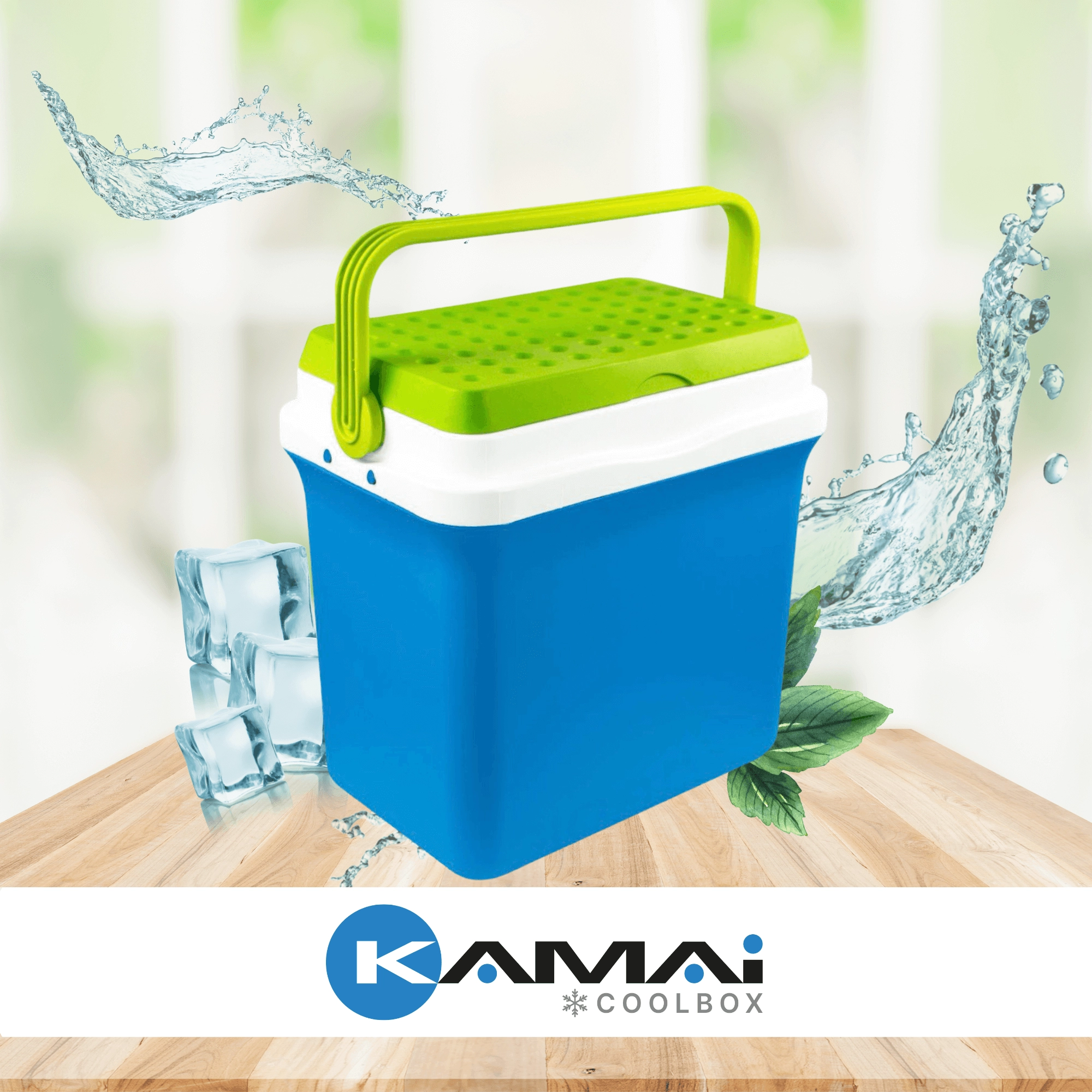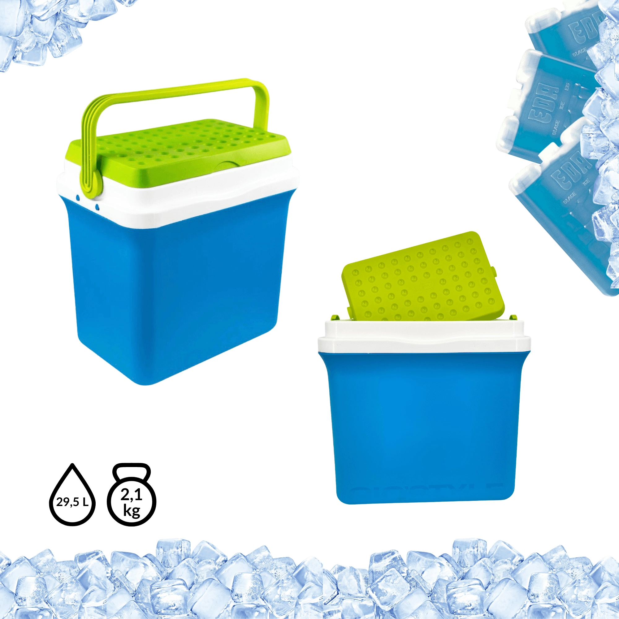Glacière portable KAMAI Fiesta 29,5 l – bleue avec couvercle vert