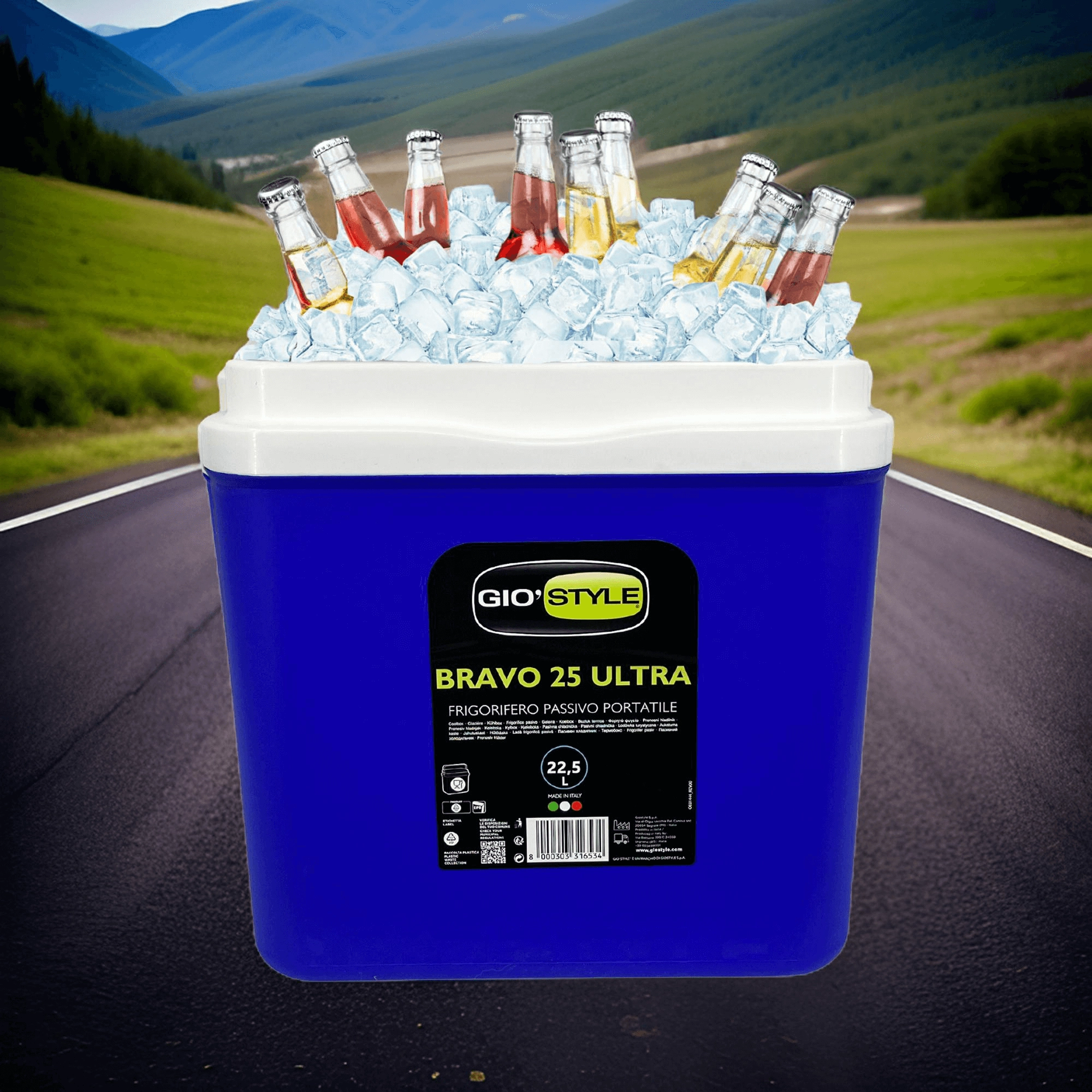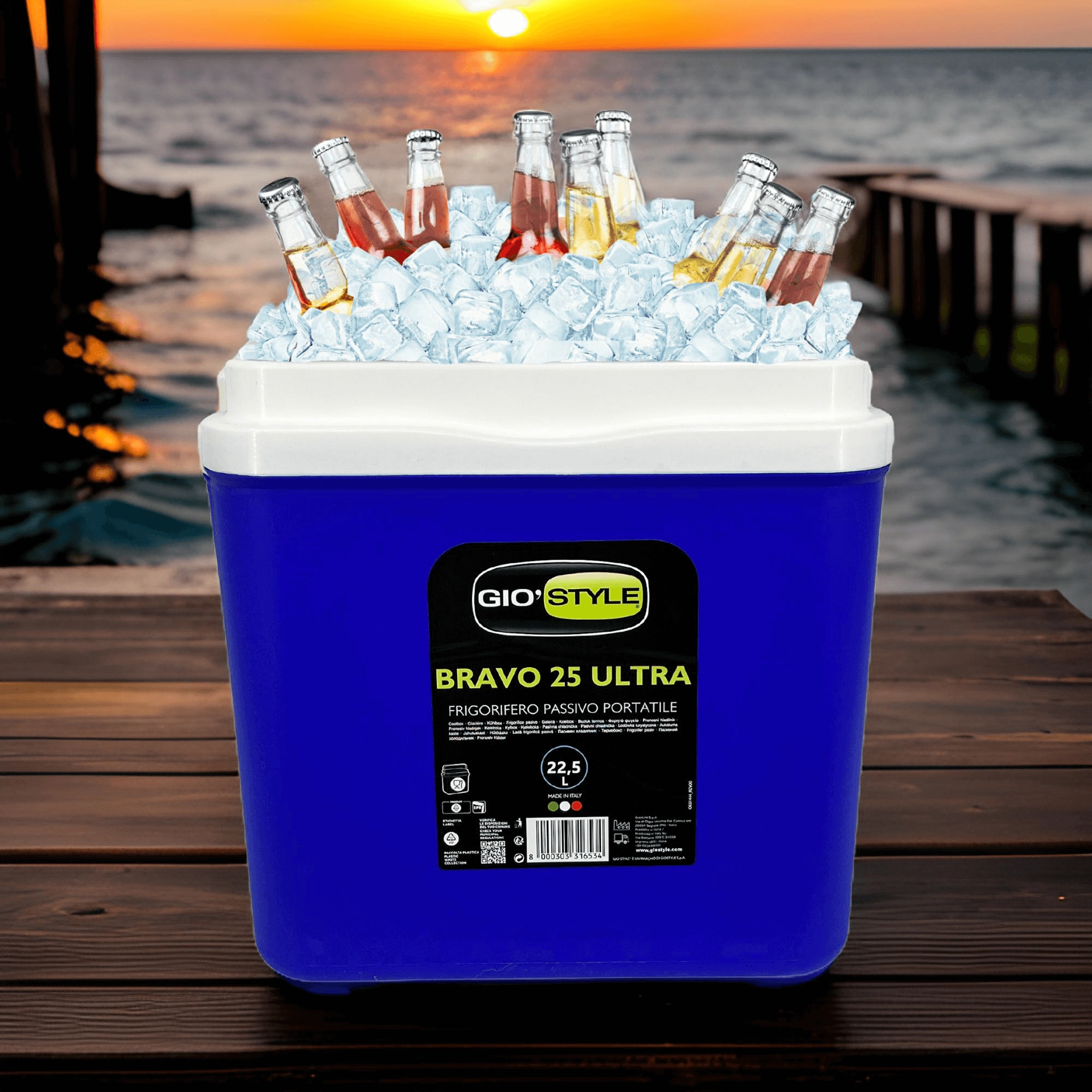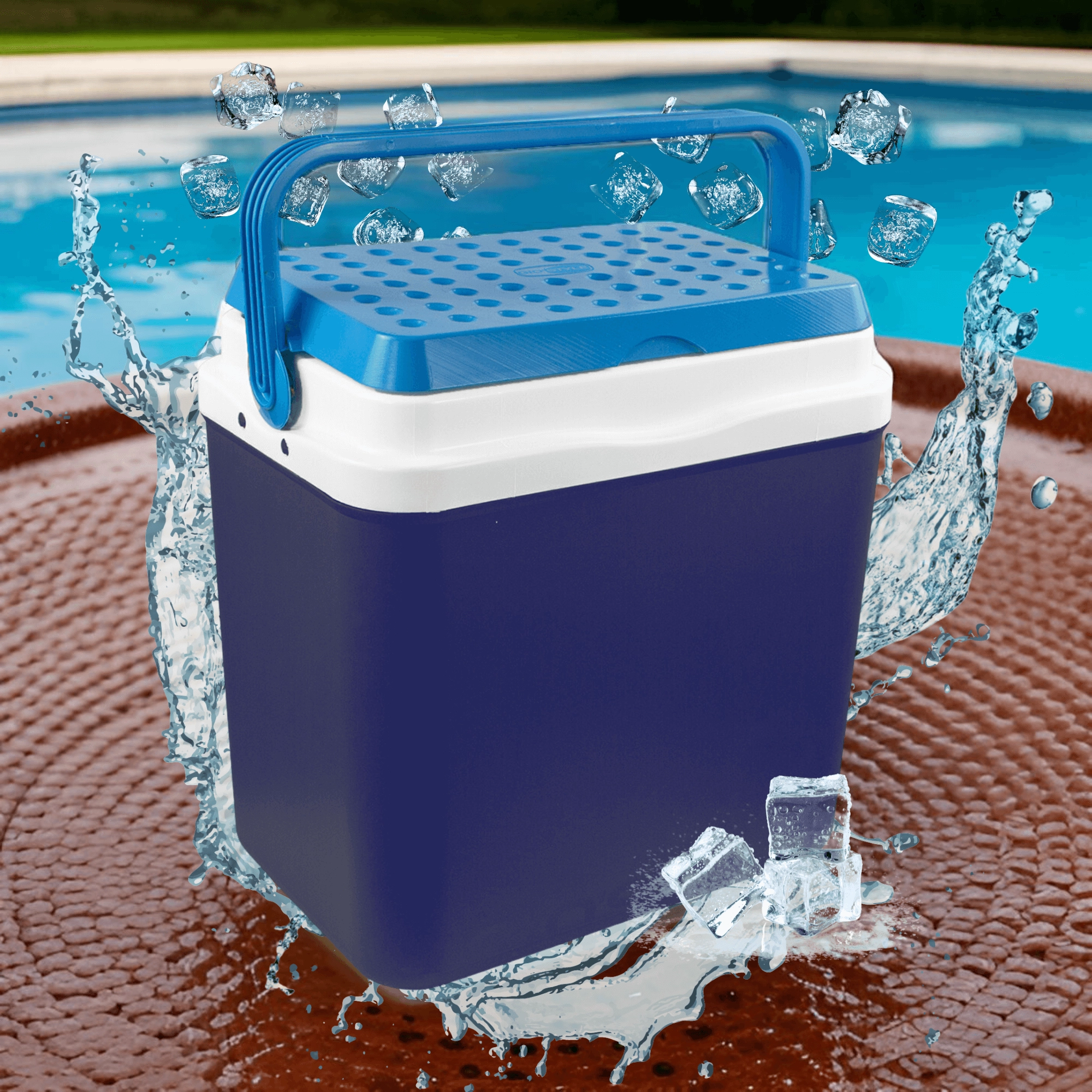 L’espace intérieur est conçu pour ranger confortablement boissons et aliments : elle peut accueillir une bouteille de 2 l en position verticale, jusqu’à 6 bouteilles de 1,5 l ou environ 15 canettes de 330 ml. Ses dimensions compactes facilitent son placement dans le coffre d’une voiture, d’un camping-car ou d’un bateau. Le corps bleu stylé avec couvercle turquoise souligne un design outdoor universel.