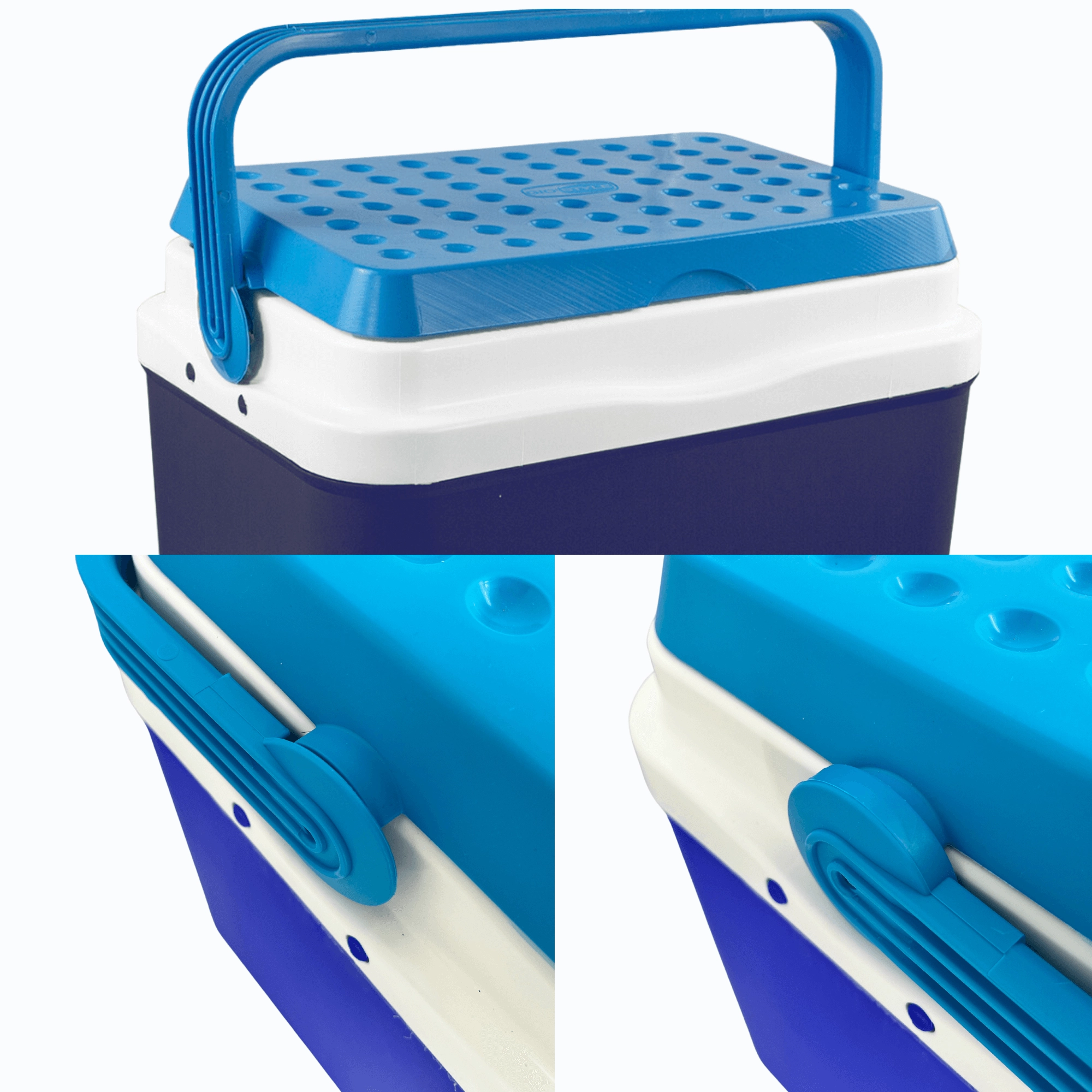 Le couvercle perforé offre des emplacements stables pour poser des gobelets, afin d’éviter que les boissons ne se renversent, même lors d’un pique-nique ou au bord de la piscine.