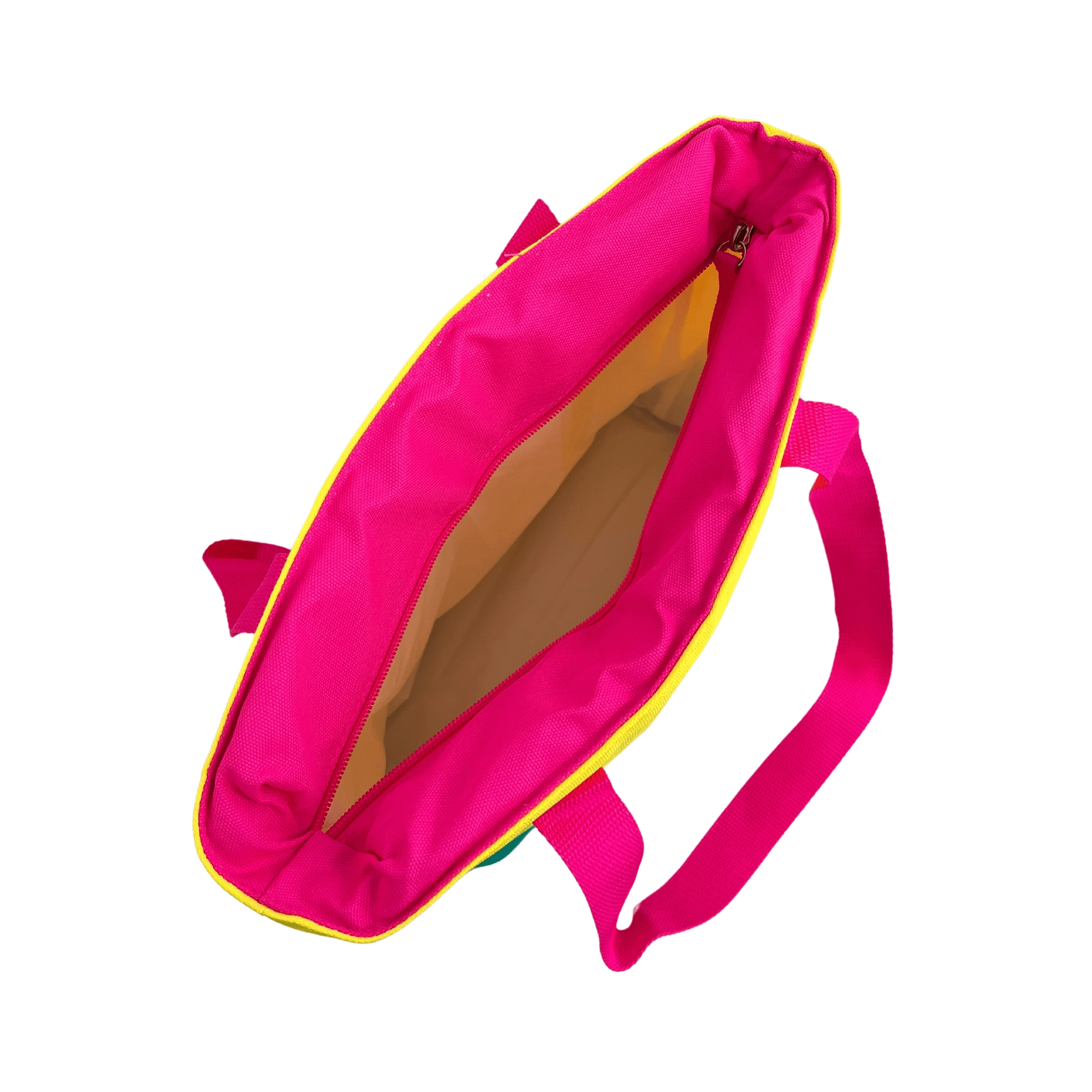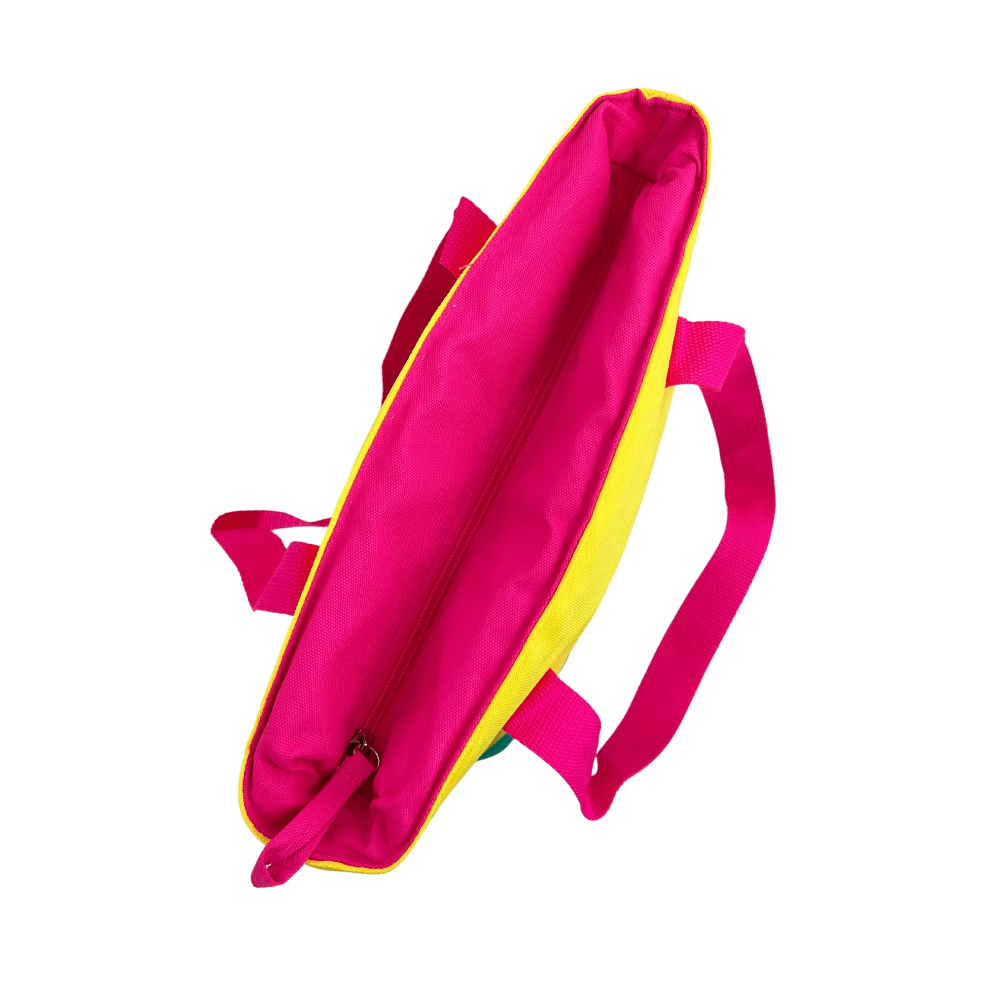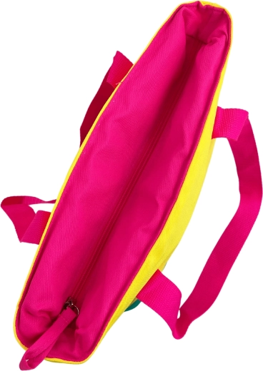 - Jaune fluo avec sangles roses et liseré inférieur turquoise