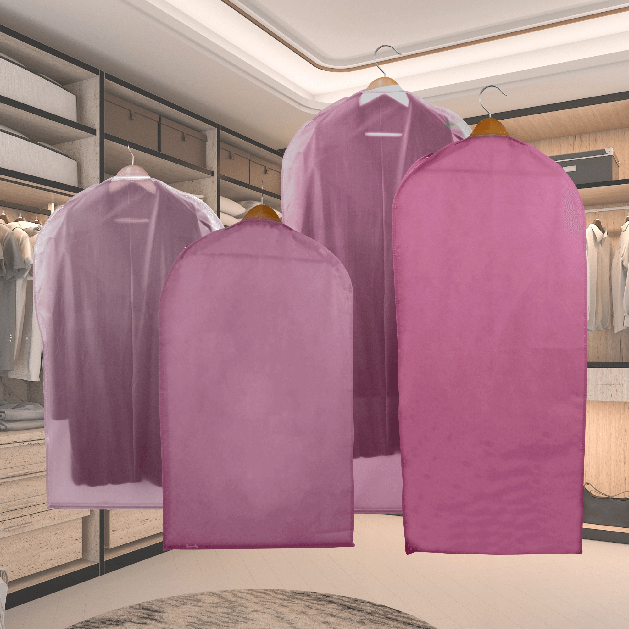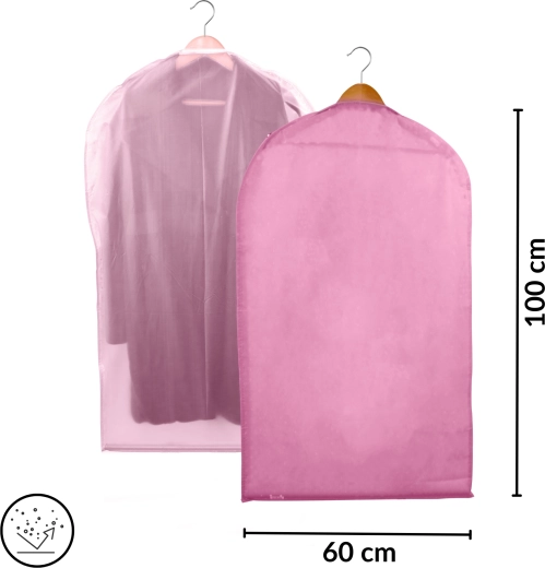 Gardez votre armoire parfaitement organisée et vos vêtements comme neufs. Cette housse rose en non-tissé de qualité protège de la poussière et des saletés, dispose d’une fermeture éclair sur toute la longueur et d’une ouverture supérieure pour le cintre. Grâce à la face avant semi-transparente, vous trouvez rapidement ce dont vous avez besoin. Idéale pour les robes, manteaux et chemises – protection contre la poussière, vue rapide du contenu, suspension facile.