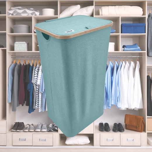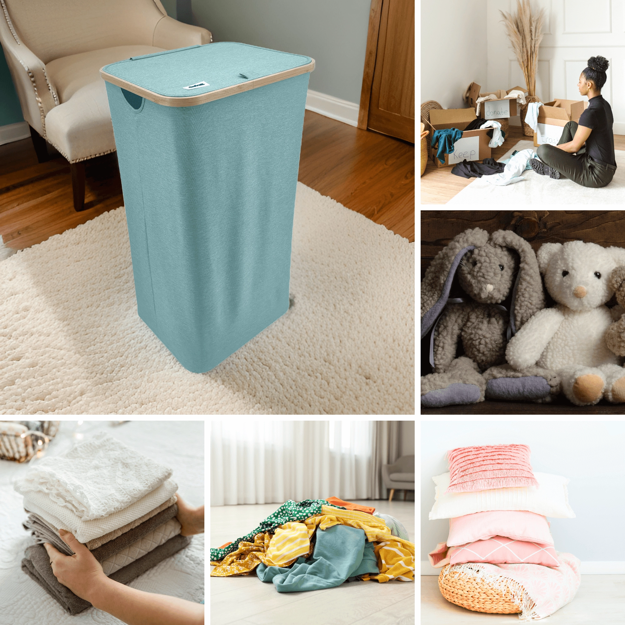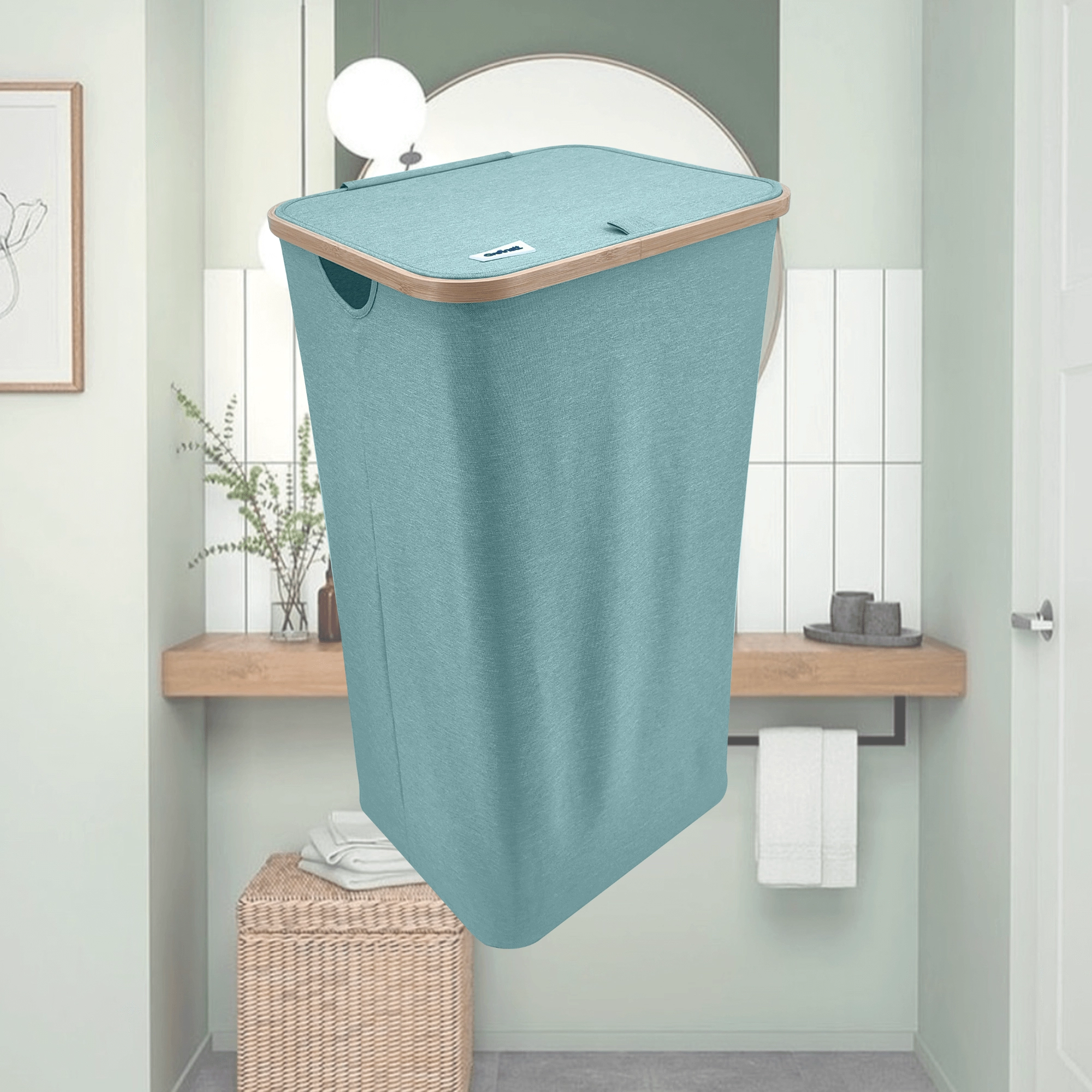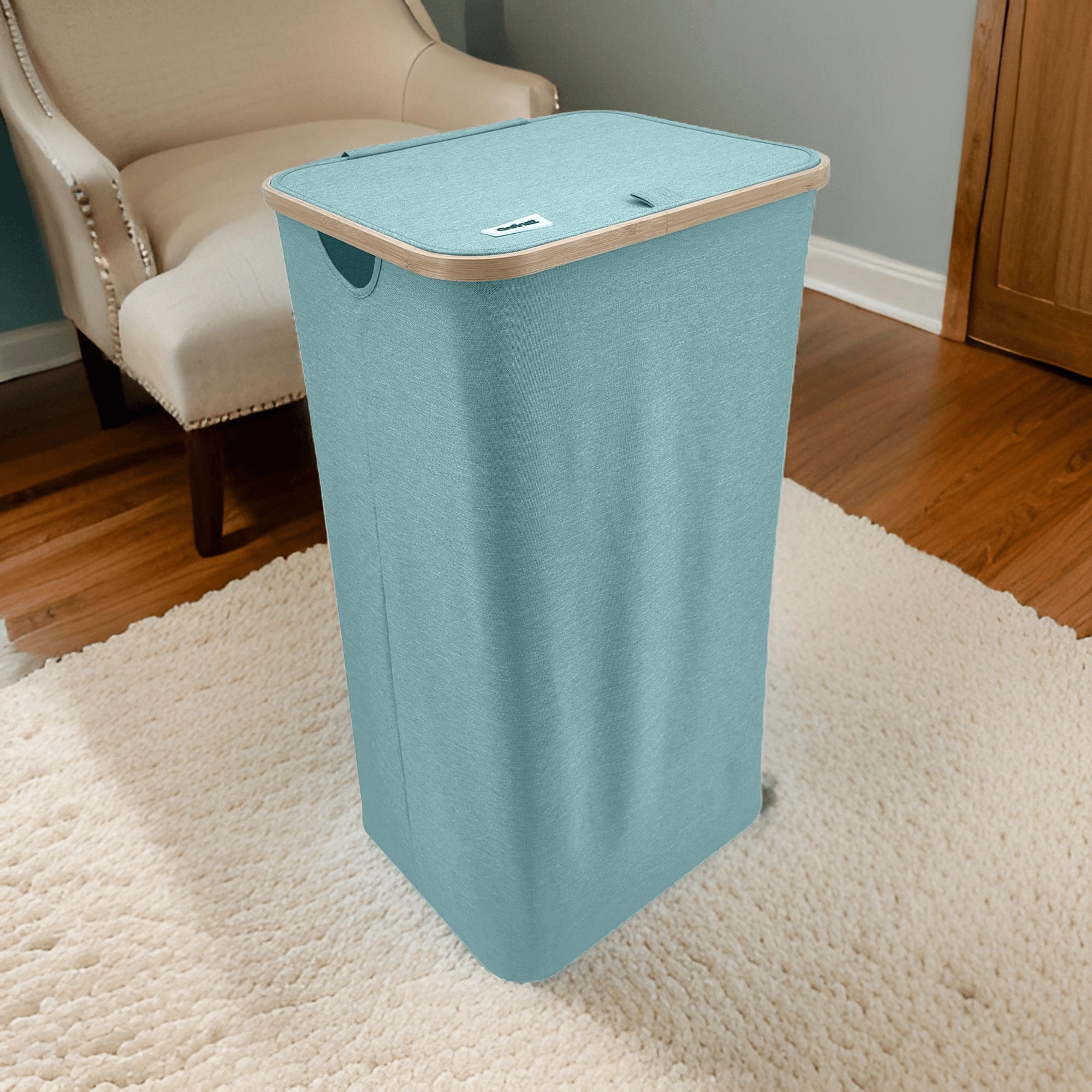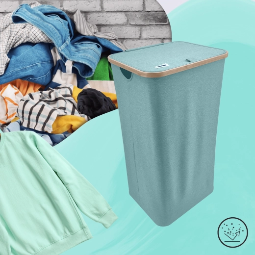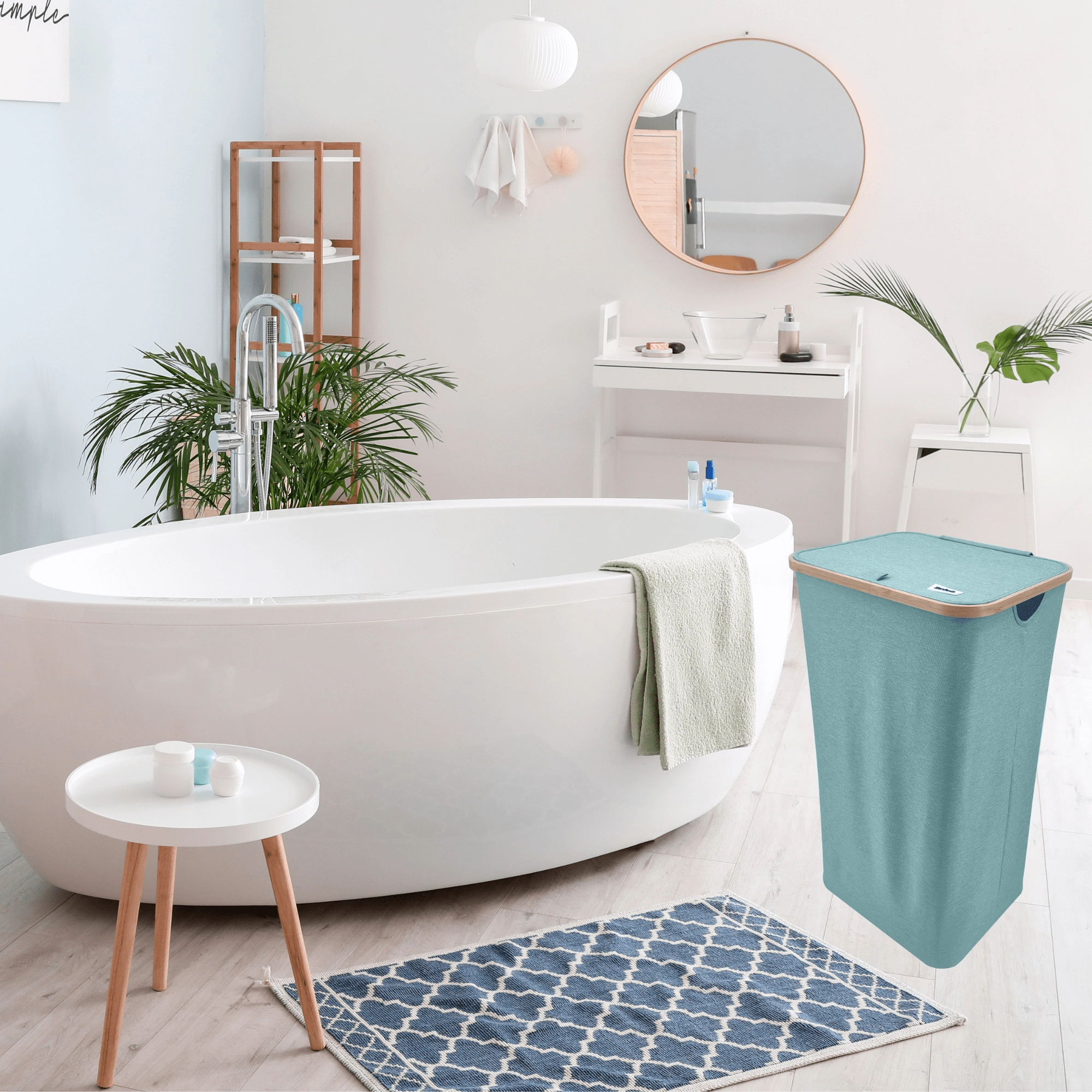 Gardez votre intérieur organisé et stylé. Ce panier à linge haut avec bordure en bambou séduit par son look moderne et ses détails pratiques. Léger mais stable, son corps textile en polyester résistant est respirant pour éviter les odeurs de renfermé, et le couvercle dissimule discrètement le contenu et les odeurs.