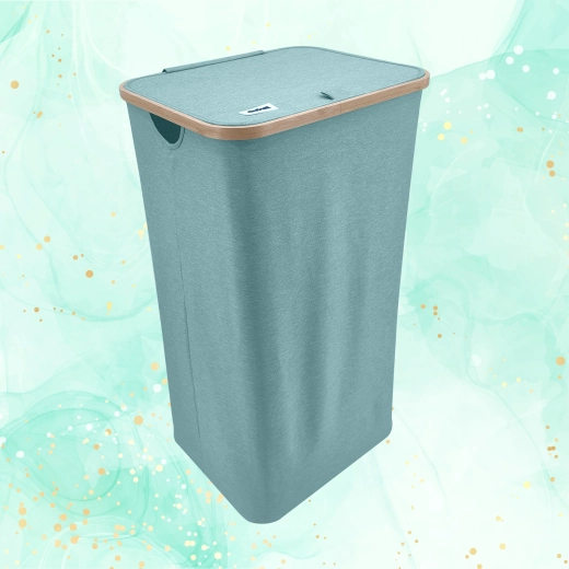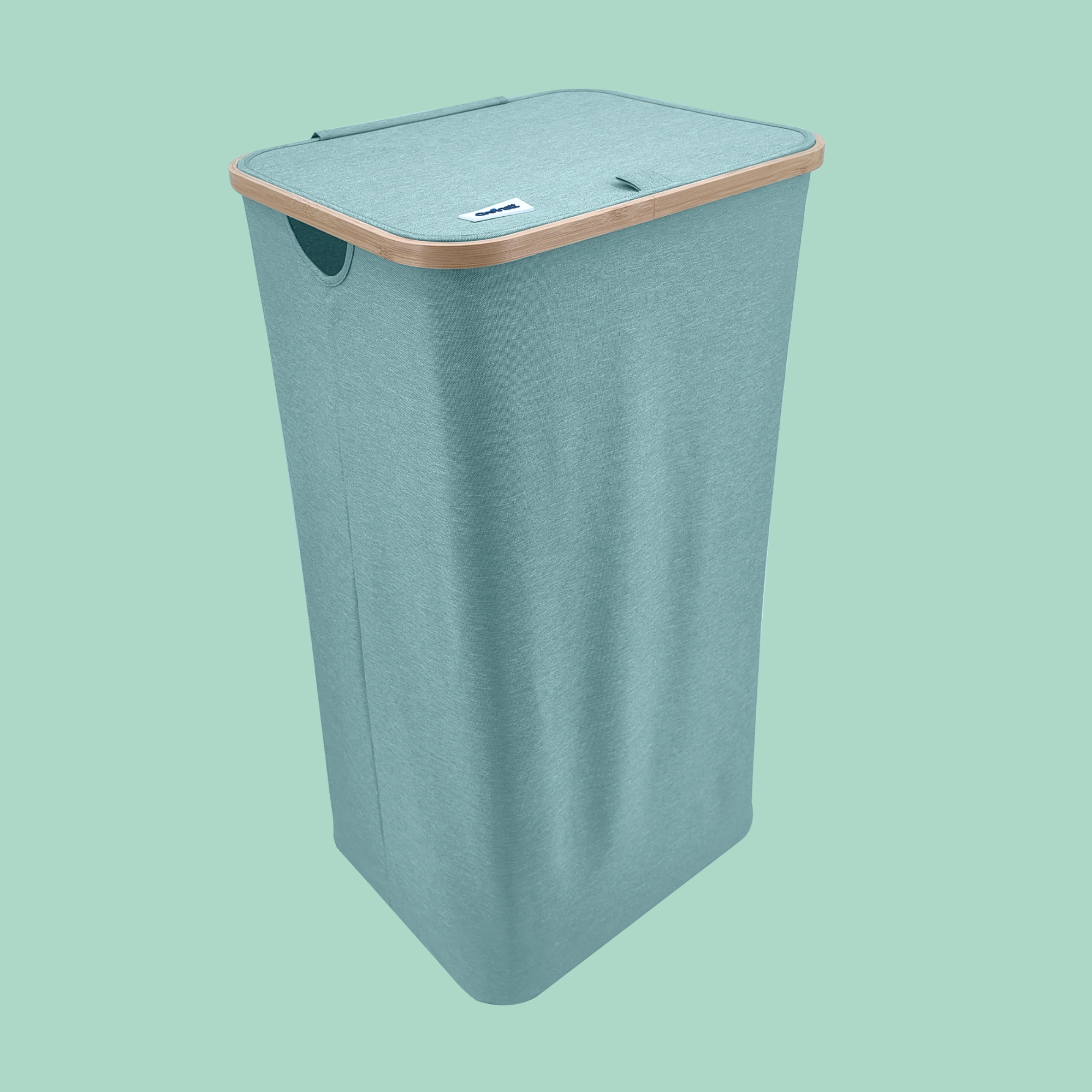 Le bord décoratif en bambou réchauffe l’intérieur, tandis que le couvercle dissimule discrètement le contenu et aide à limiter la propagation des odeurs.