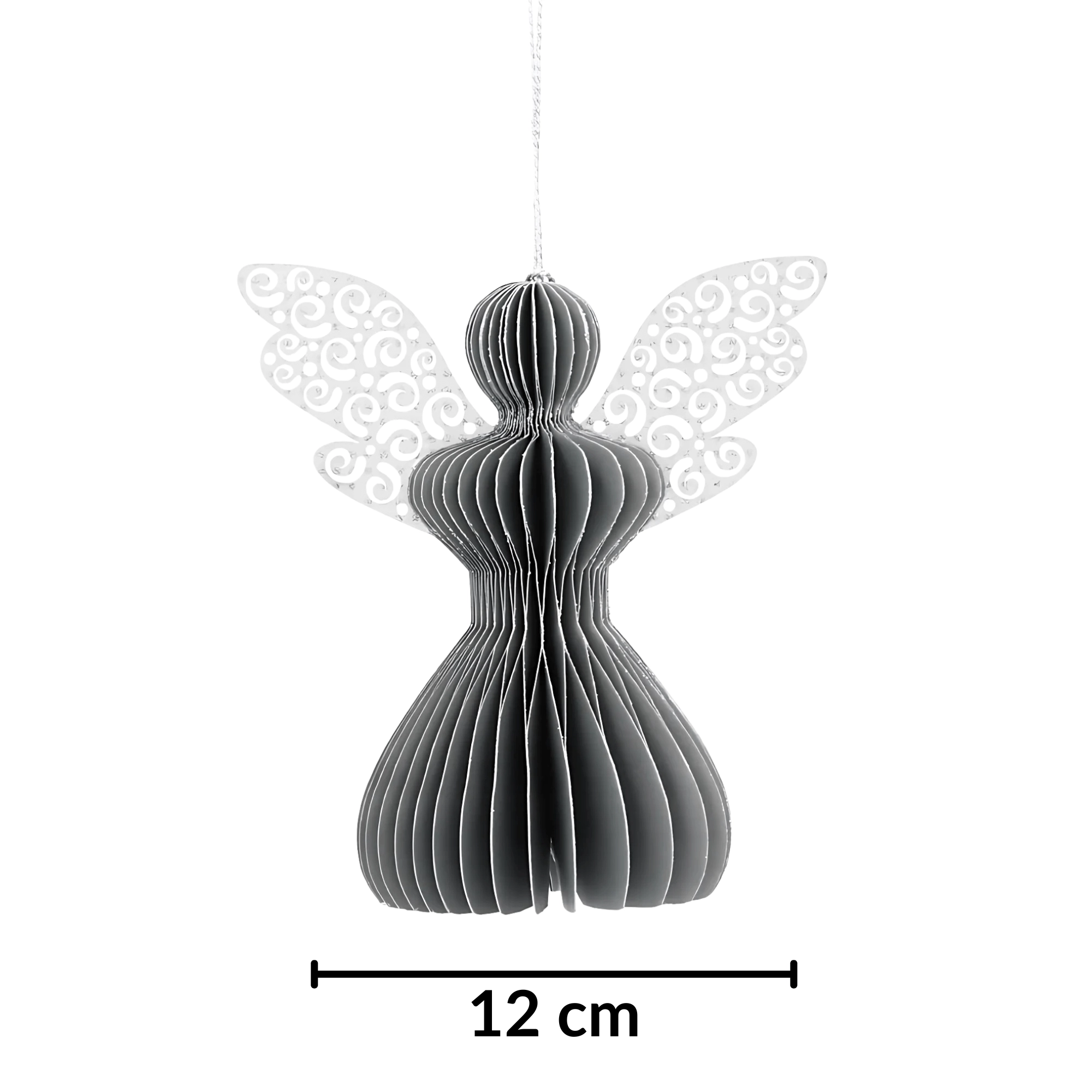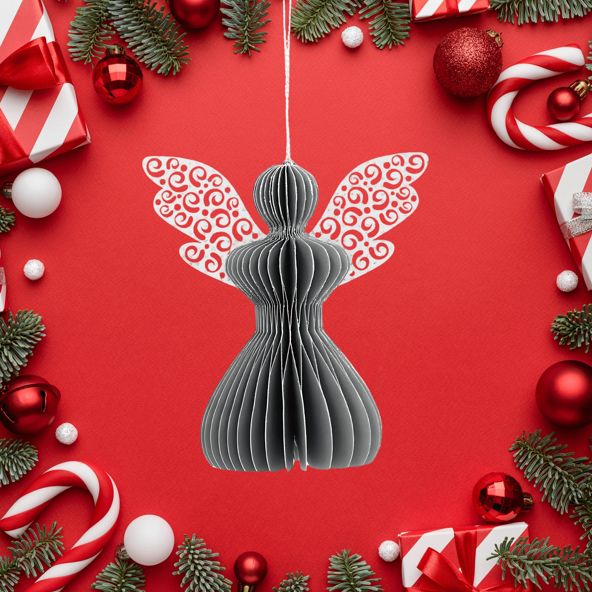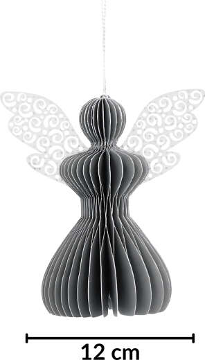 Un ange gris stylé à effet 3D accordéon apporte une élégante douceur et une atmosphère de Noël chaleureuse à votre intérieur. La teinte grise neutre se marie aisément avec des accessoires dorés, blancs ou naturels, et convient aux décors modernes comme classiques.