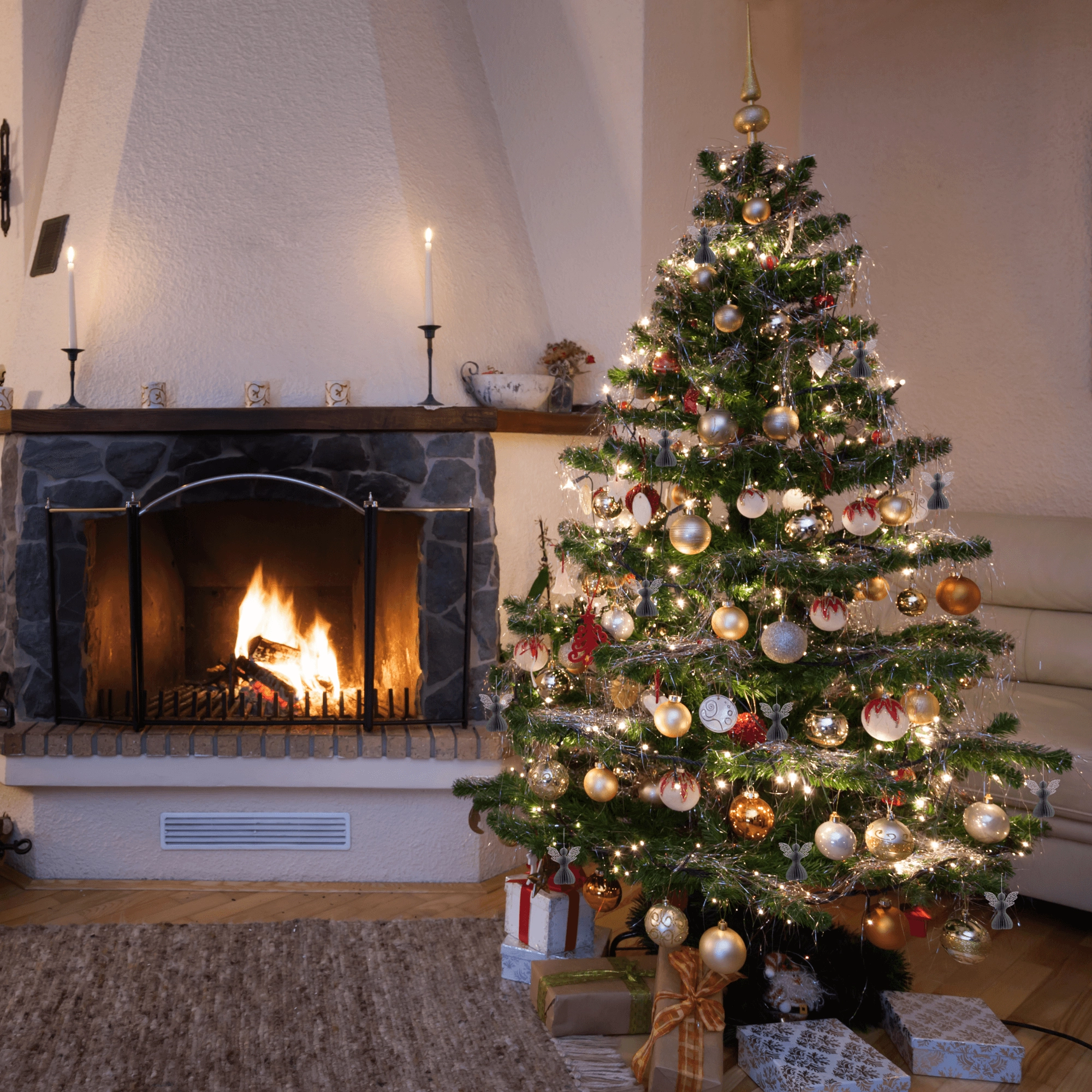 - Sapin de Noël, couronnes, décorations de table et suspendues
