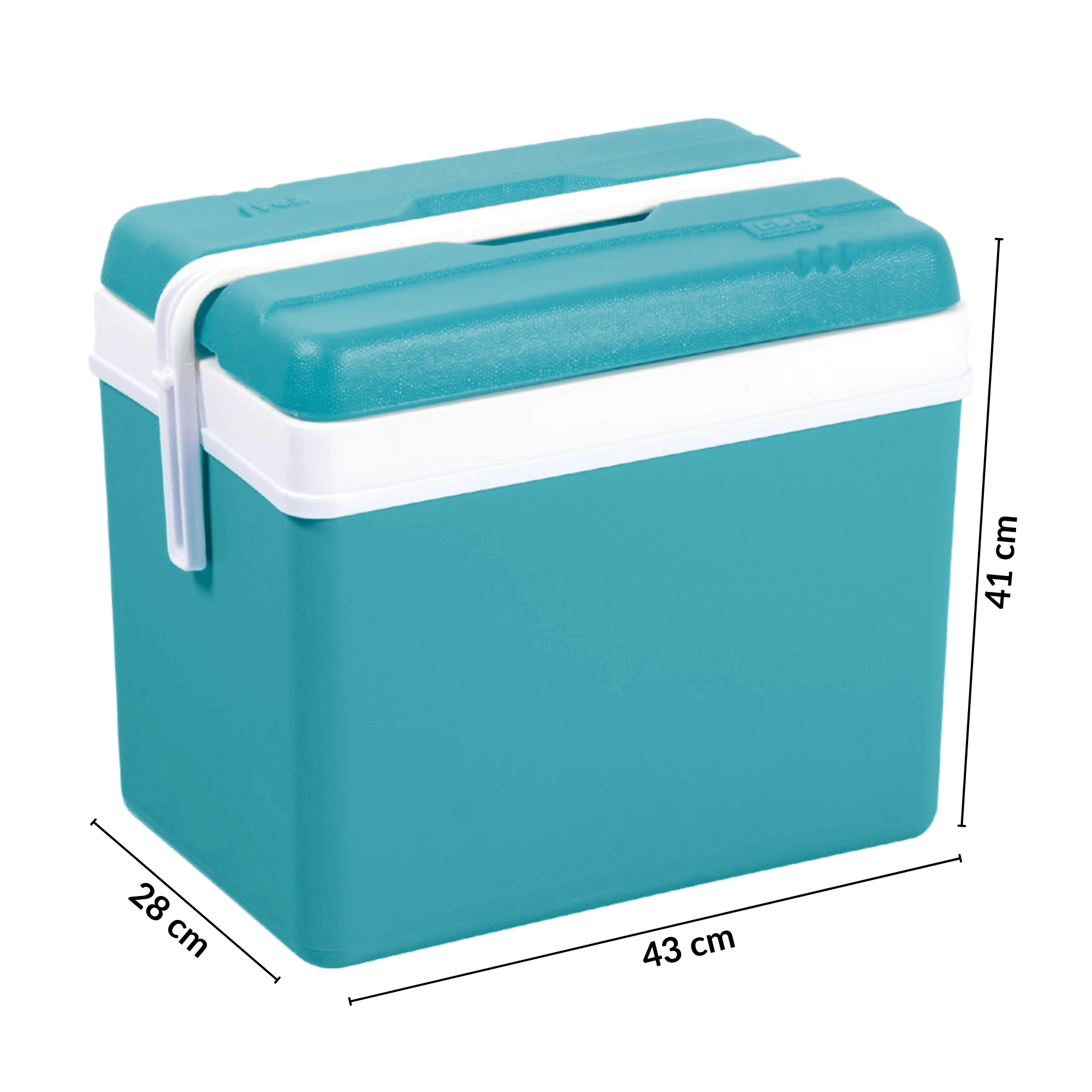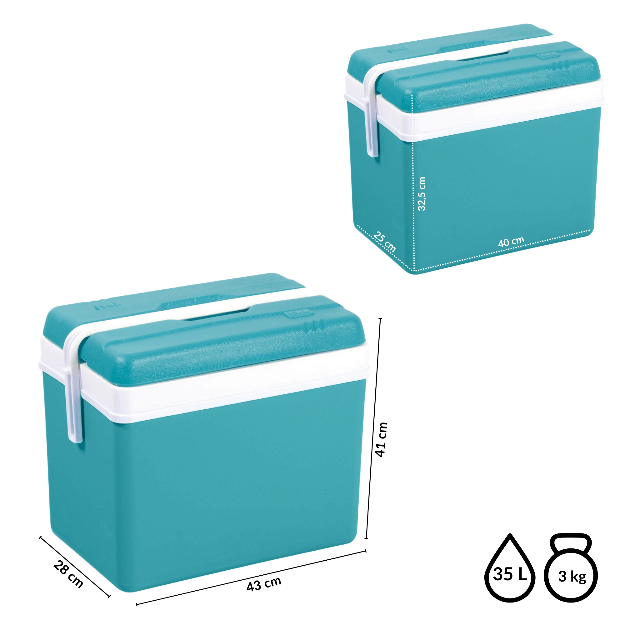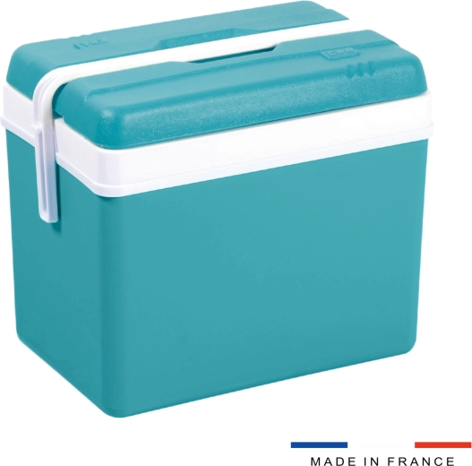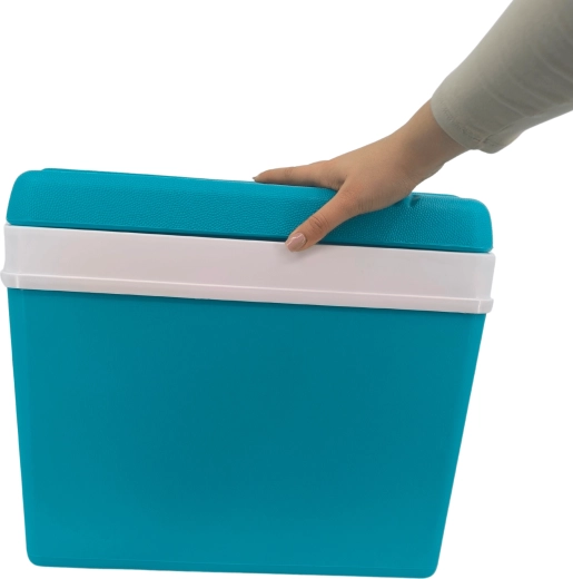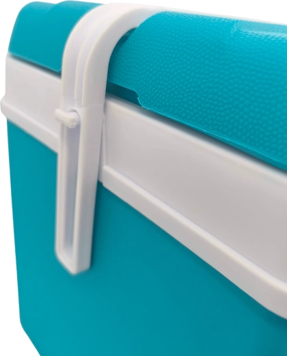 Refroidissez facilement avec des accumulateurs de froid et profitez de boissons bien fraîches pendant des heures. Les surfaces plastiques lisses se nettoient rapidement et le polypropylène résistant supporte sans problème les conditions exigeantes en déplacement. Son design turquoise élégant avec liseré blanc se démarque aussi bien au pique-nique qu’à la plage.