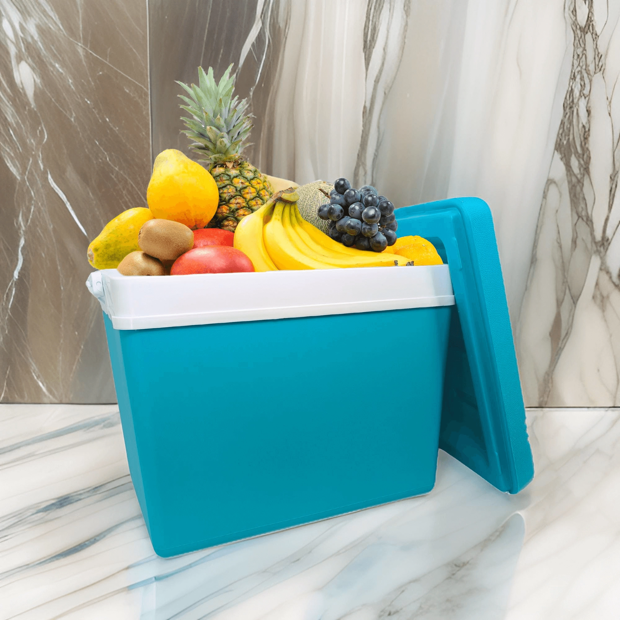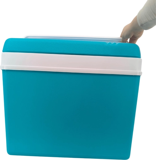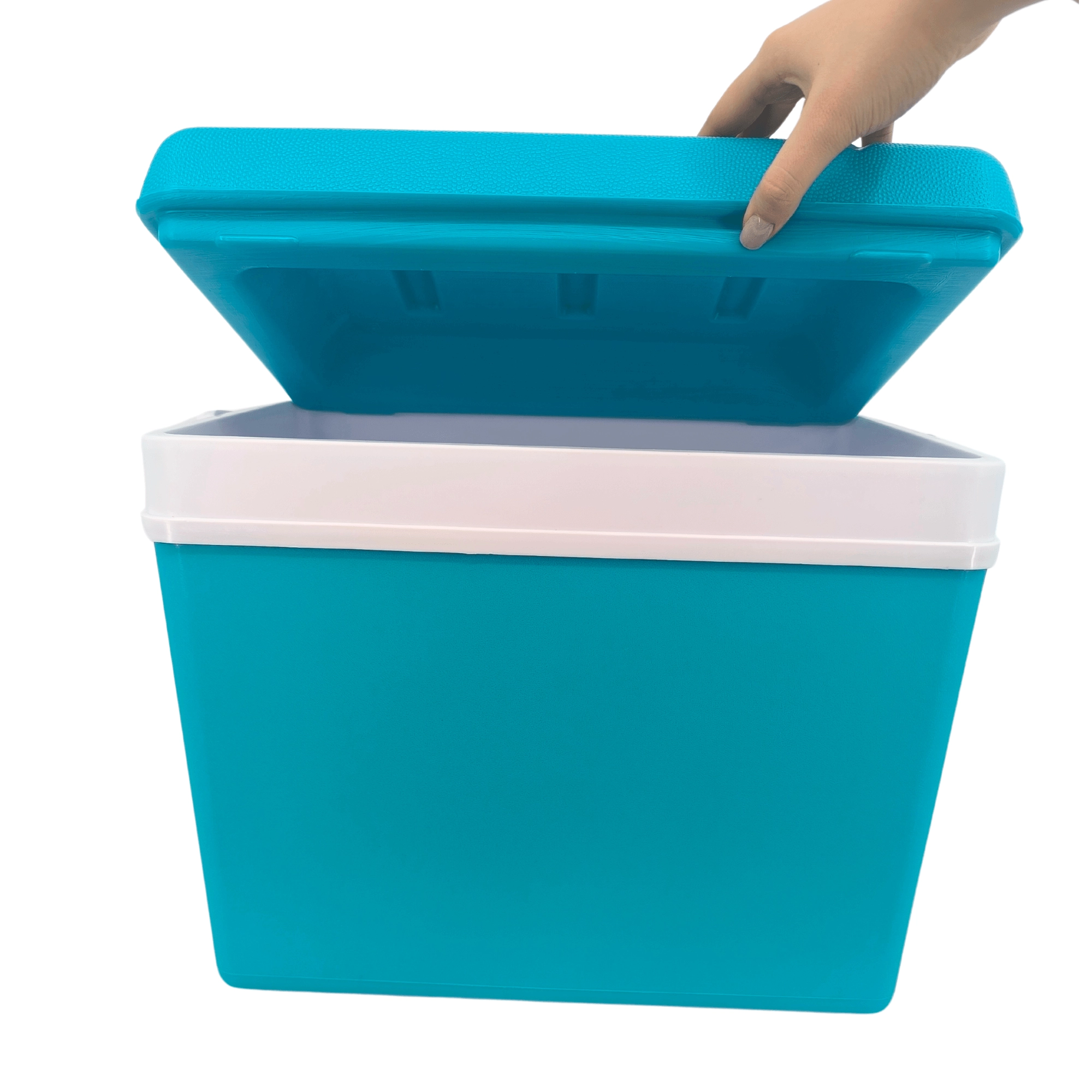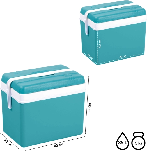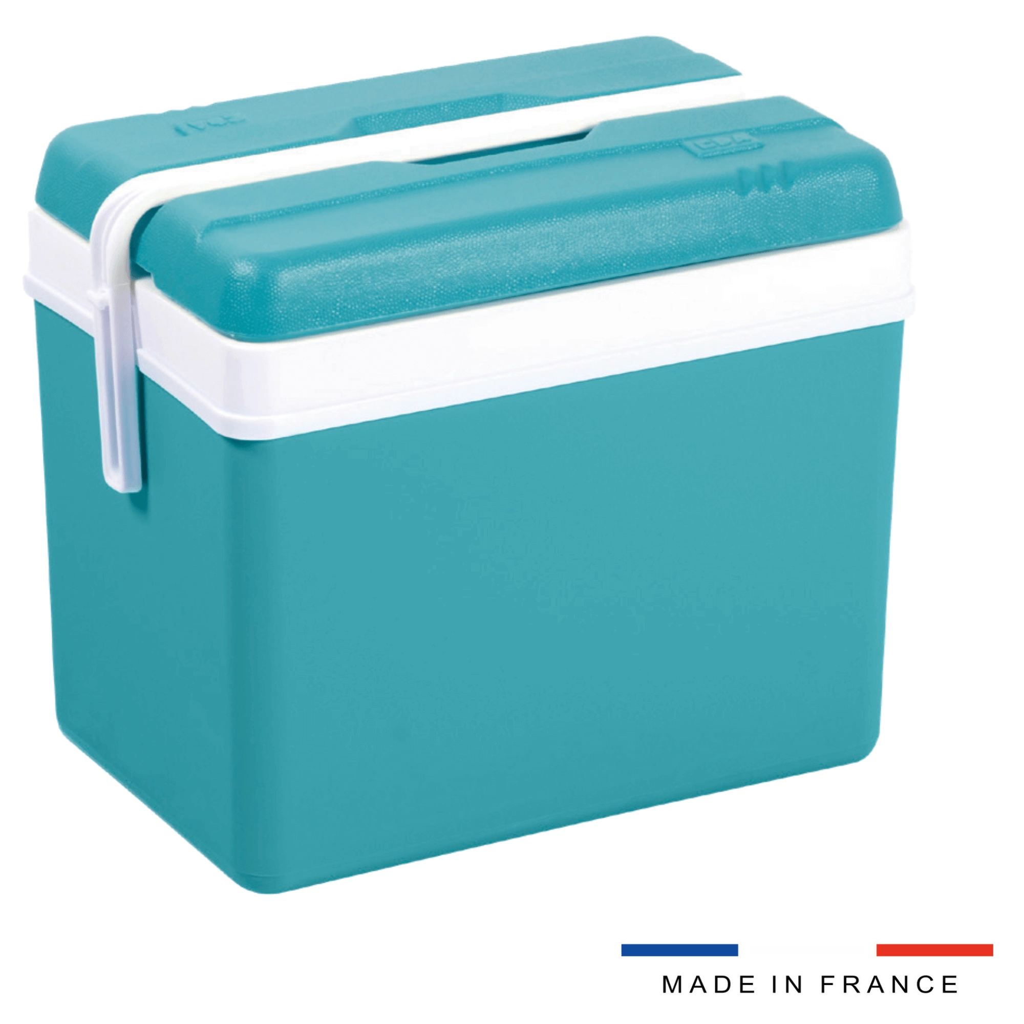 Refroidissez facilement avec des accumulateurs de froid et profitez de boissons bien fraîches pendant des heures. Les surfaces plastiques lisses se nettoient rapidement et le polypropylène résistant supporte sans problème les conditions exigeantes en déplacement. Son design turquoise élégant avec liseré blanc se démarque aussi bien au pique-nique qu’à la plage.