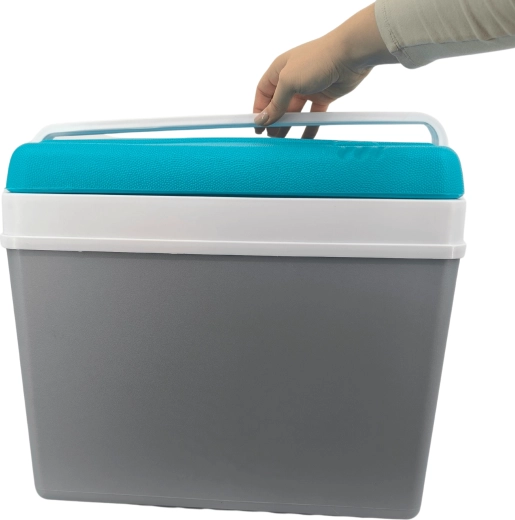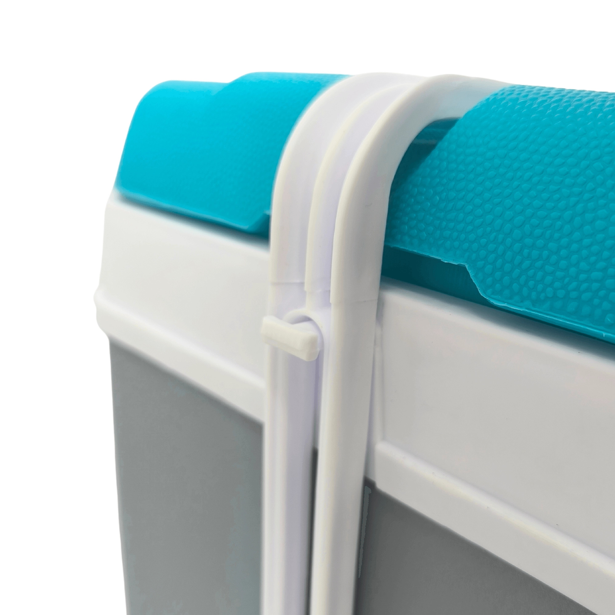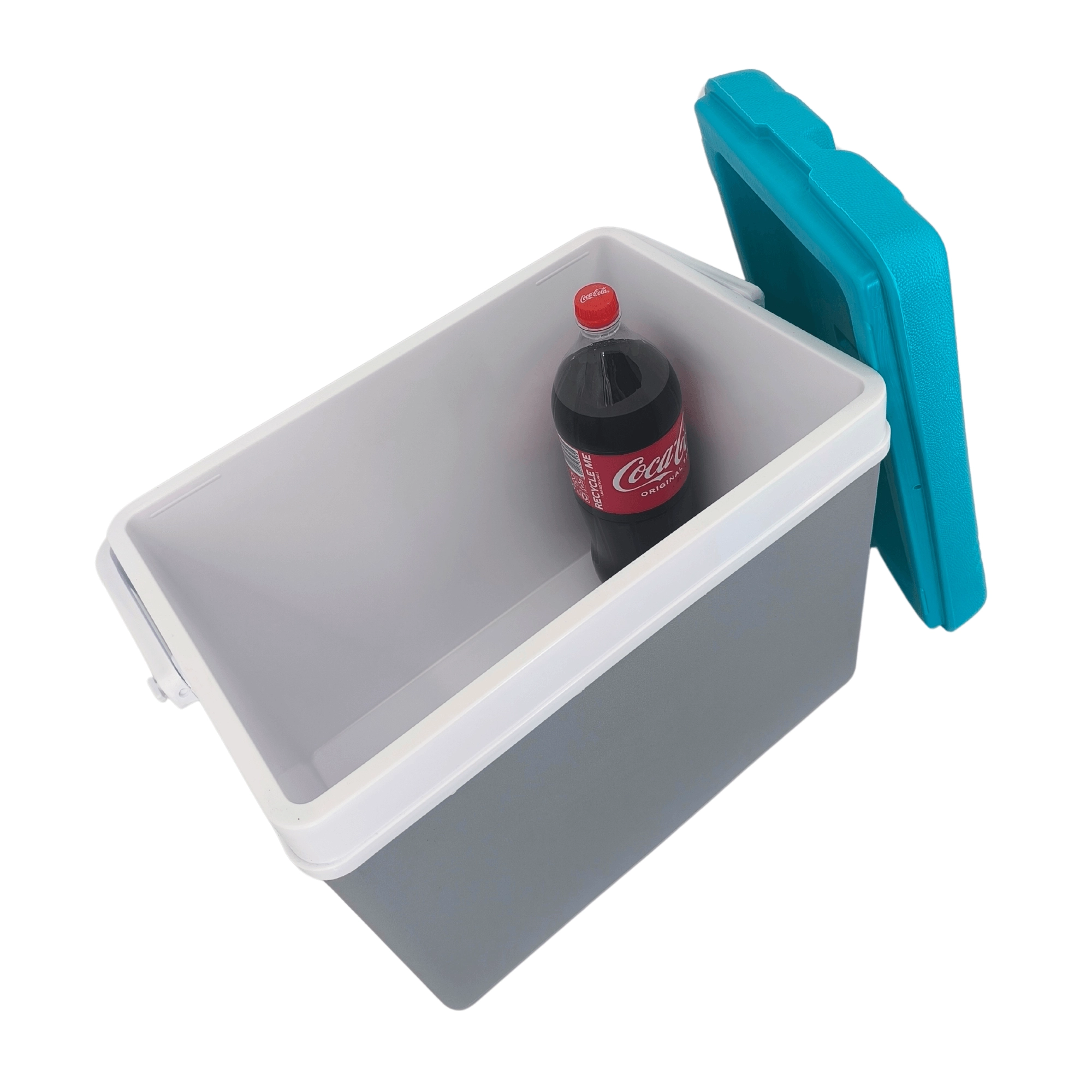 Sa construction en polypropylène de qualité est légère, robuste et facile à laver. La poignée rabattable robuste assure une prise en main sûre lors du transport et maintient le couvercle fermement en place. L’espace intérieur est conçu pour ranger sans difficulté des bouteilles PET de 2 L en position verticale tout en laissant de la place pour des encas, des fruits et des canettes.