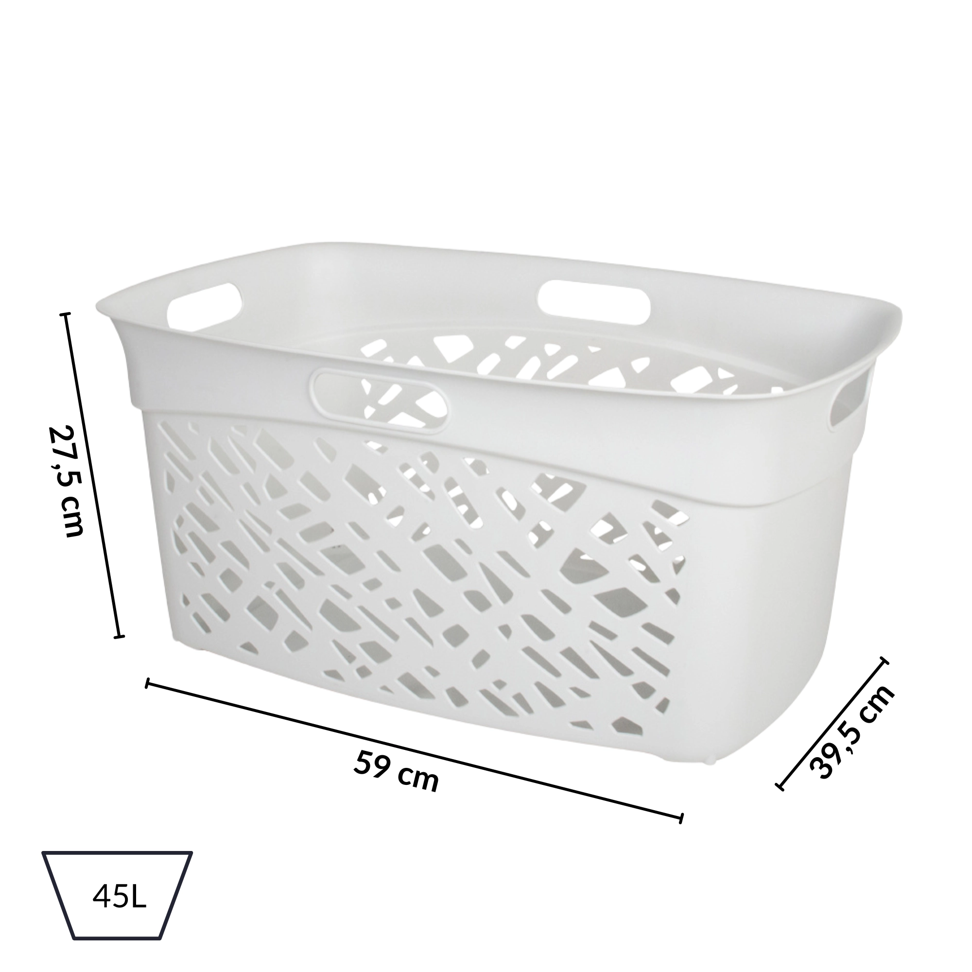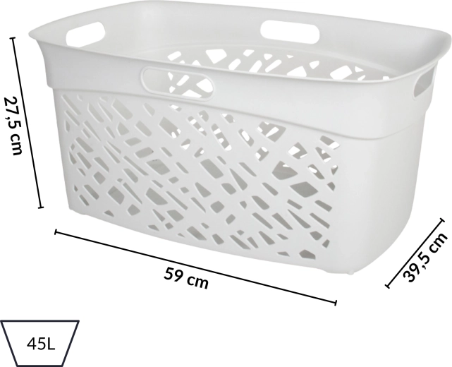 Le panier à linge ALMERIA 45 l est une solution à la fois élégante et fonctionnelle pour trier et transporter le linge au quotidien. La perforation asymétrique assure une circulation de l’air qui limite l’humidité et les odeurs, tandis que ses lignes épurées s’intègrent facilement aux intérieurs modernes comme classiques.