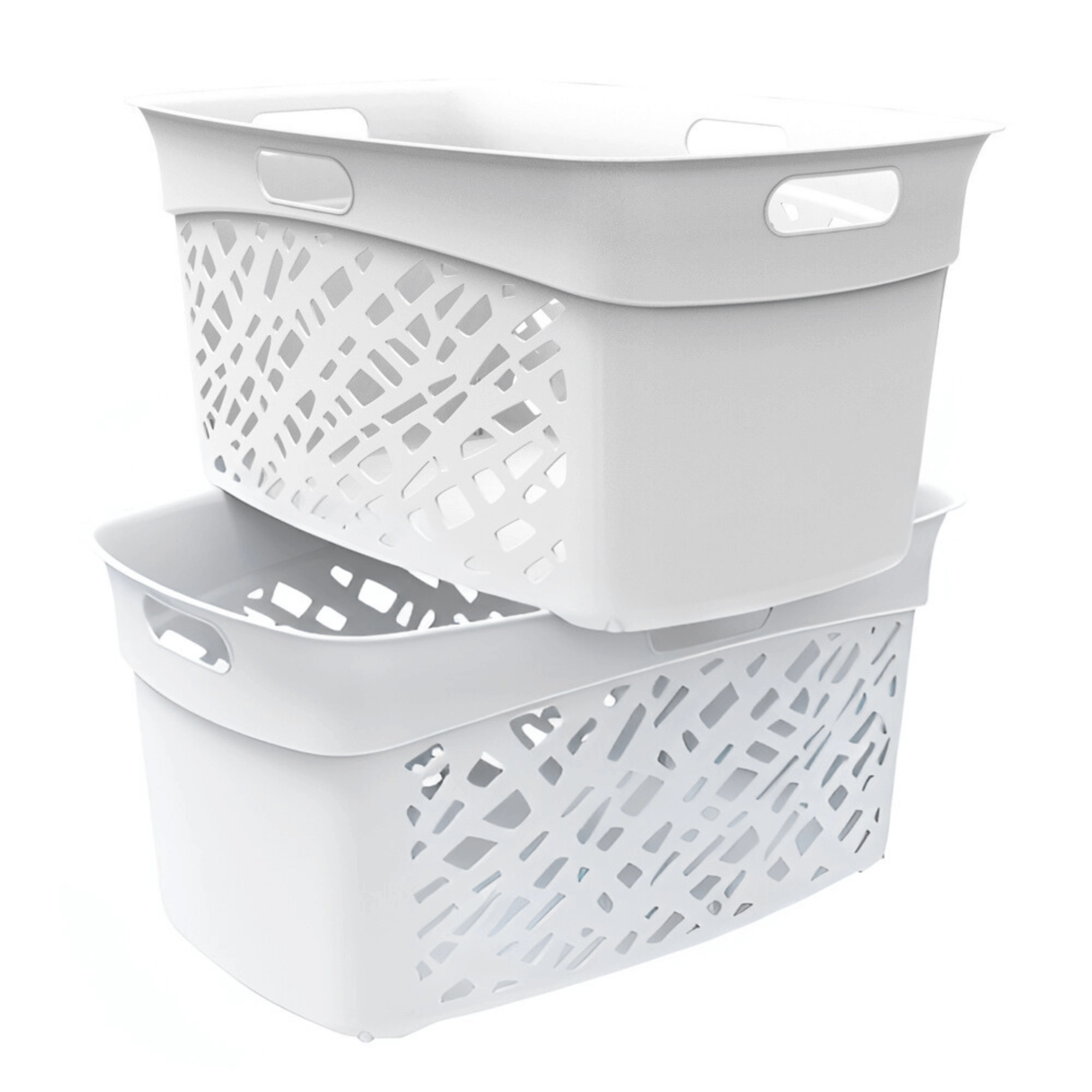Sa forme spéciale permet d’empiler les paniers. Une solution idéale pour les salles de bain et buanderies à l’espace limité.