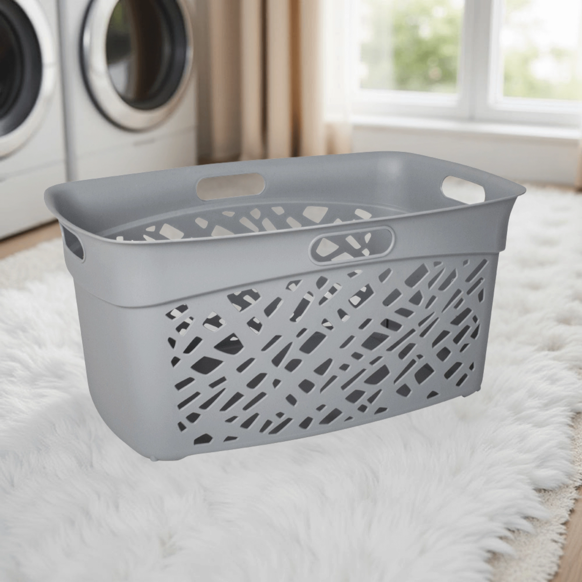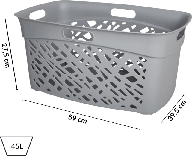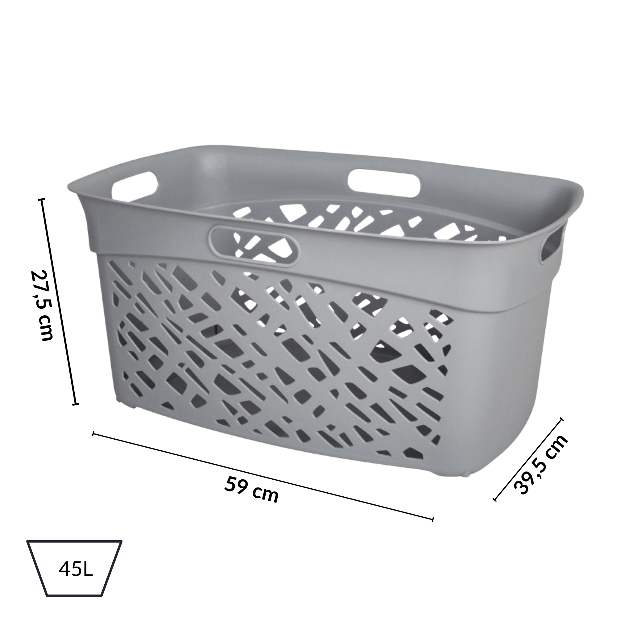 Le panier à linge ALMERIA associe un motif asymétrique à de larges ouvertures d’aération pour une meilleure circulation de l’air, limitant l’humidité et les odeurs. Son élégant coloris gris s’intègre à tout intérieur et souligne le style moderne et épuré de la maison.