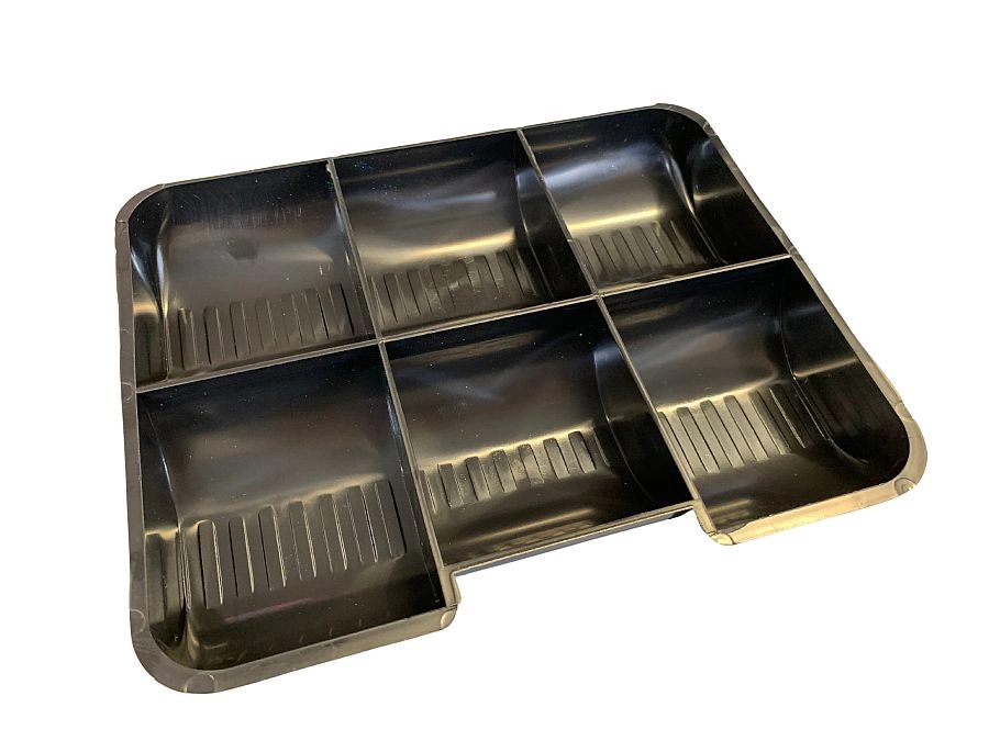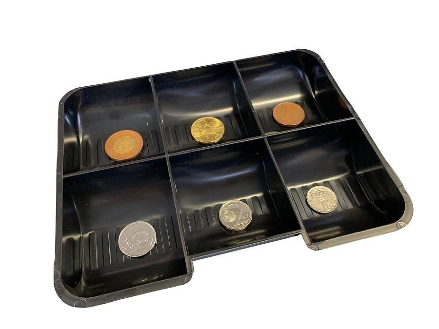 Le plateau intérieur en plastique avec sections séparées permet un tri et une distribution rapides des pièces, ce qui accélère le travail en caisse.