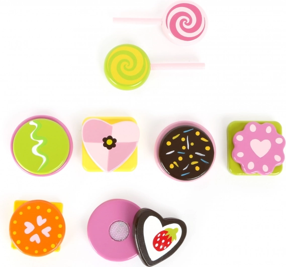 Découvrez la magie du jeu gourmand avec l’ensemble varié de douceurs en bois SMALL FOOT. Les sucettes, biscuits et pralines sont fabriqués en bois certifié FSC à 100 % et, grâce aux solides bandes auto-agrippantes, les enfants peuvent les séparer et les assembler à l’infini. Des accessoires réalistes qui transforment toute cuisine d’enfant en pâtisserie créative.