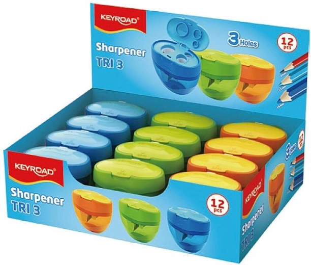 Le taille-crayon Keyroad Tri Plus est une solution universelle pour tous les types d’instruments d’écriture. Grâce aux trois diamètres d’ouvertures (8 mm, 11 mm et 16 mm), vous taillez facilement les crayons standards, les crayons de couleur classiques ainsi que les gros crayons jumbo. Le réservoir intégré de grande capacité maintient l’espace de travail propre, et le couvercle transparent empêche tout déversement involontaire des copeaux.