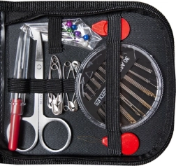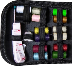 Enrichissez votre équipement de couture avec ce kit polyvalent. Contient 70 éléments différents, appropriés pour les tâches de couture quotidiennes et les réparations rapides en voyage. Grâce à son agencement organisé dans un étui textile, vous trouverez facilement ce dont vous avez besoin.