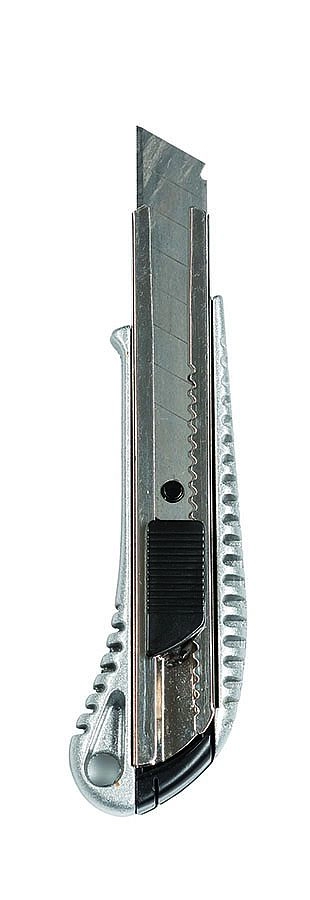 Le couteau sécable CONCORDE tout en métal, robuste, est idéal pour des coupes précises et sûres à l’atelier comme à la maison. Il offre une construction métallique massive, un verrou de sécurité pour un travail en toute sûreté, une surface antidérapante pour une prise en main ferme et un réservoir pour lames de rechange. Largeur de lame 18 mm, longueur du couteau 15 cm, emballage sous blister.