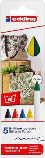 Découvrez une liberté créative avec les marqueurs pour textile Edding 4600 dans un set pratique de 5 couleurs de base. Idéals pour écrire, dessiner et décorer des textiles clairs tels que le coton, la soie et le lin. L’encre à base d’eau a une odeur neutre, elle sèche rapidement et est résistante à la lumière. La pointe ronde avec un tracé de 1 mm garantit des résultats précis sur des t-shirts, des housses, des sachets et des boîtes recouvertes de tissu.