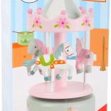 Boîte à musique en bois carrousel avec chevaux rose