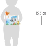 Deux petites figurines en bois accompagnent l’enfant lors de la lecture et du jeu et peuvent être fixées au dos du livre à l’aide de bandes auto-agrippantes.