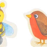 Livre d’images en bois + 2 figurines en bois (abeille, oiseau)