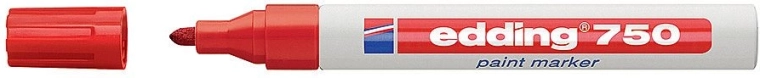 Marqueur à laque universel edding 750 en rouge intense pour le marquage sur presque tous les matériaux, y compris les surfaces sombres et translucides. Il possède un corps en aluminium résistant, une encre à séchage rapide et hydrofuge, résistante à la lumière et aux températures élevées, ainsi qu’aux acides et bases. La pointe remplaçable assure une longue durée de vie. Largeur de trait 2–4 mm.