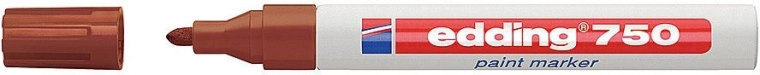Marqueur laque universel edding 750 de couleur marron, écrit de manière fiable sur presque tous les matériaux, offre une excellente opacité même sur surfaces sombres et translucides. Il possède un corps en aluminium résistant aux environnements exigeants, sèche rapidement, est étanche, résistant à la lumière et résiste aux hautes températures ainsi qu’à l’abrasion. Il propose une pointe remplaçable avec un tracé de 2–4 mm et une résistance aux acides et bases.